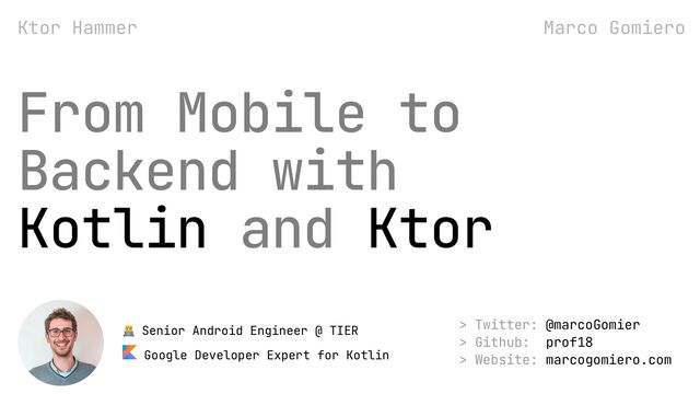 With this talk, I want to show how it is possible to bring your mobile knowledge (and shift it a little bit) to build a backend with Kotlin and Ktor. I will show how to structure the project, set up Dependency Injection, connect to a database and test everything to have a working backend ready to be deployed.