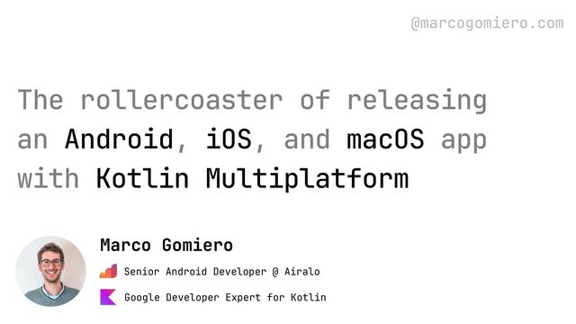 The rollercoaster of releasing an Android, iOS, and macOS app with Kotlin Multiplatform | droidcon Italy