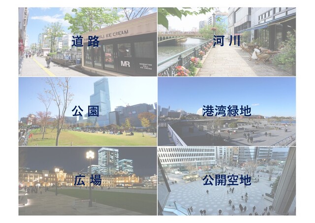 河 川 空間の使⽤という意味においては、河川法で管理される、⾃然公物である河川の区域は「河川が適正に利⽤され、流⽔の正常な機能が維持され、及び河川環境の整備 と保全がされる」限り「⾃由使⽤」が原則である。ただし、流況に影響を及ぼす、「⼟地の掘削、盛⼟若しくは切⼟その他⼟地の形状を変更する⾏為⼜は⽵⽊の栽植 若しくは伐採」には河川管理者の許可が必要であり、⼯作物の設置等を⾏うには⼟地の占⽤許可が必要となる。占⽤については許可に係る基準等を定めた「河川敷地 占⽤許可準則」があり、2011年の改正により、河川管理者が指定する「都市・地域再⽣等利⽤区域」の中においては、広場や イベント施設等及びこれらと⼀体と なった飲⾷店、売店、オープンカフェ等の占⽤も可能となった。空間の利活⽤を進めるムーブメントとして「かわまちづくり」、「MIZUBERING」などがあり、「か わまちづくり」については、「かわまちづくり」⽀援制度実施要綱にもとづき河川管理者による「ソフト施策」、「ハード施策」が講じられる。敷地としては「⾃由 使⽤」が原則であり、ムーブメントは盛んだが、空間の使⽤に伴い必要となる施設・設備の設置ということになると、ハードルは低くない。また、河川区域(特に⾼ ⽔敷)でイベント等を⾏う場合、河川の流況が安定している時期と出⽔期(⼀般的に6⽉~10⽉頃)では、河川管理者の対応は異なってくる。梅⾬や台⾵の時期は集中 して降⾬が想定されるため、⾼⽔敷に⽔が乗る確率が⾼くなるため、こうした中ではイベント等を容易に認める(正確にはイベント等に伴う施設・設備等の設置が認 められない:⾏為そのものは⾃由使⽤であるから)ことは出来なくなるということを前提に、河川空間の利活⽤を考えるべきである。 公 園 実態として公園制度が始まった当初より⺠間の飲⾷・宿泊施設等が区域内に存在した都市公園には、法制定当時から、公園管理者以外の者による公園施設の設置管理 許可制度及び他の公物管理法と同様の占⽤許可制度が存在し、明治時代から⺠間の料亭やレストランが存在する。2017年の都市公園法の改正により、設置管理許可制 度をつかったPark-PFI制度が始まり、⺠間の収益施設の設置が積極的に⾏われるようになった。イベント等の⾏為の許可については、地⽅公共団体の条例で定められ ており⼀般的に⾸⻑の許可の対象となっているが、ごく希にイベントを許可の対象にしていない条例も⾒られる。許可の対象となってはいるものの、管理者の裁量に より許可されないことも多い。禁⽌⾏為(条例による)が多いことも社会問題となっている。2017年の法改正により、保育所等の社会福祉施設が公園の占⽤物件とし て追加されている。道路や河川と違って、指定管理者制度が普及しており、イベント等の⾏為の許可等の公権⼒⾏使が指定管理者に下りていることも少なくない。 港 湾 緑 地 港湾法で定められる「港湾区域」(⽔域)、「港湾隣接地域」の他、都市計画法、港湾法で定められる「臨港地区」などの区域の概念があるが、⼀般的に利活⽤の対 象となり得る空間は、港湾法に定められる「港湾施設」のうちの「港湾環境整備施設」(海浜、緑地、広場、植栽、休憩所その他の港湾の環境の整備のための施設) であり、⼀般的に「港湾緑地」と呼ばれる空間である。港湾法で定められている禁⽌⾏為、⾏為の届出等は、船舶等の放置や⽔域施設の建設などが対象であり、⼀般 的な利活⽤の対象となる港湾施設(港湾緑地を含む)の使⽤や占⽤、⼯作物の設置、⾏為の禁⽌・制限等については、地⽅公共団体の港湾施設条例、港湾緑地条例等 により定められている。これらの内容は港湾管理者(地⽅公共団体等)の考えによりまちまちであり、積極的な利活⽤を想定しているもの、テニスコートの使⽤等し か想定していないもの、物品販売の可否、催しのための広場の⼀部・全部の独占利⽤などの可否なども様々である。 広 場 ペ デ ス ト リ ア ン デ ( キ 都市計画法の都市施設には「広場」があるが、公物としてこれを管理するための法律はなく、地⽅⾃治法上の「公の施設」として地⽅公共団体の条例によって管理さ れているほか、他法令、例えば道路法の道路、都市公園法の公園として管理されていることも多い。また、いわゆる駅前広場や交通広場など、鉄道事業者等が所有の ⼟地と地⽅公共団体の⼟地にまたがったている広場も多く、100%鉄道事業者等の管理、100%地⽅公共団体の管理、共同で管理、鉄道事業者等の所有地も含めて地⽅ 公共団体体管理など、管理の形態もまちまちであるが、全体としては、地⽅公共団体の条例によって管理されている例が多い。道路法の道路として管理されている場 合は、道路法、道路交通法がかかっているため、多様な利活⽤を図ることは容易ではない。地⽅公共団体の広場条例は内容はまちまちであるものの、⾏為・占⽤の許 可等、都市公園条例と類似の内容となっていることが多い