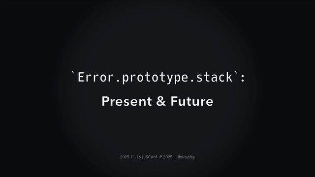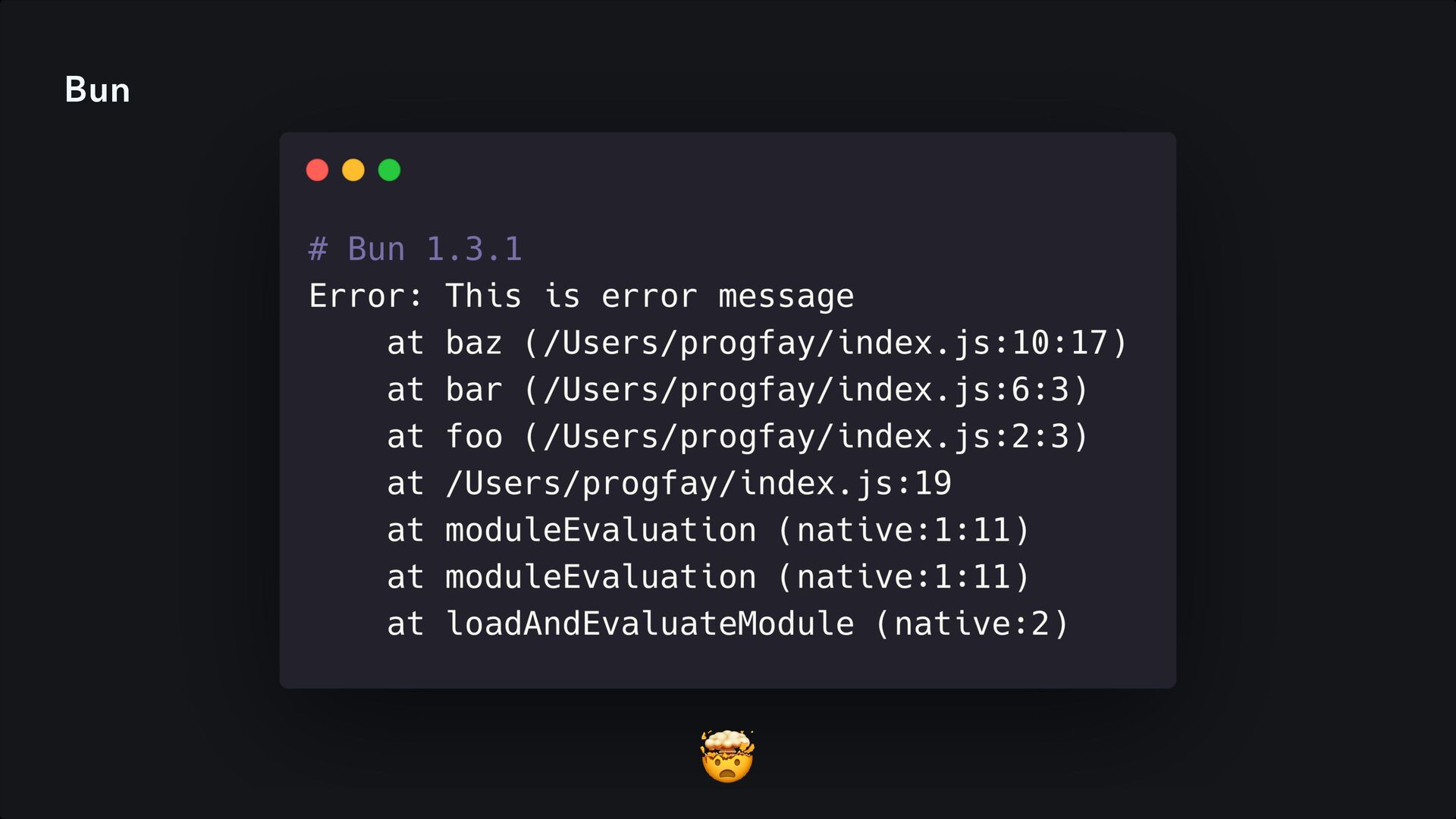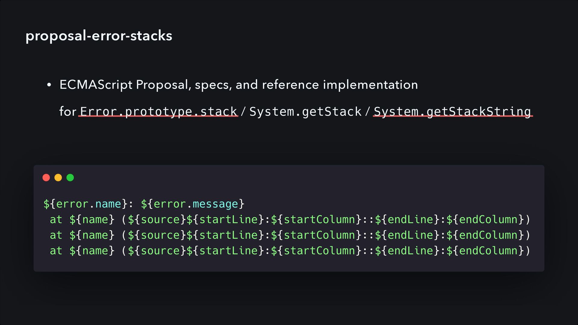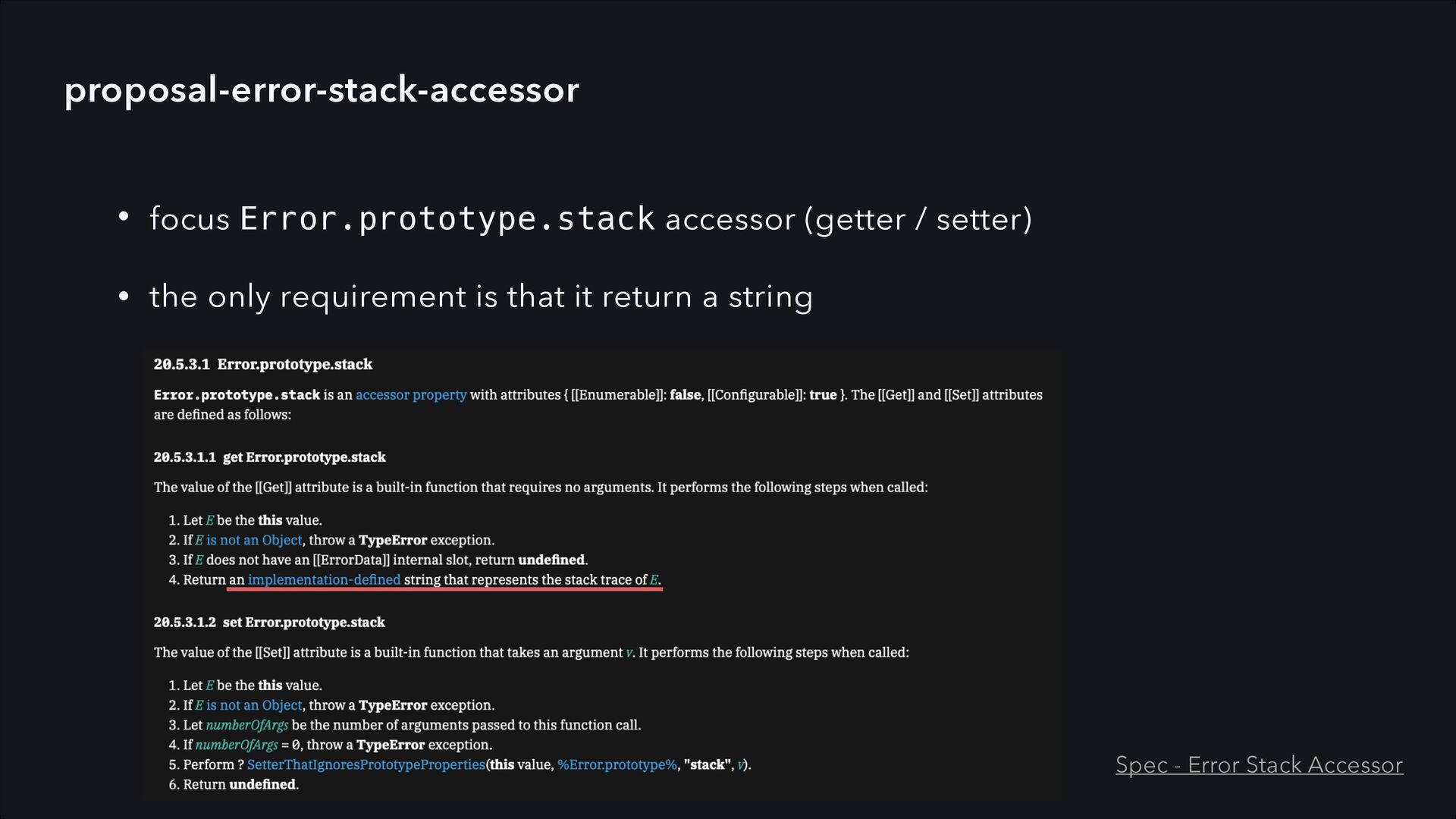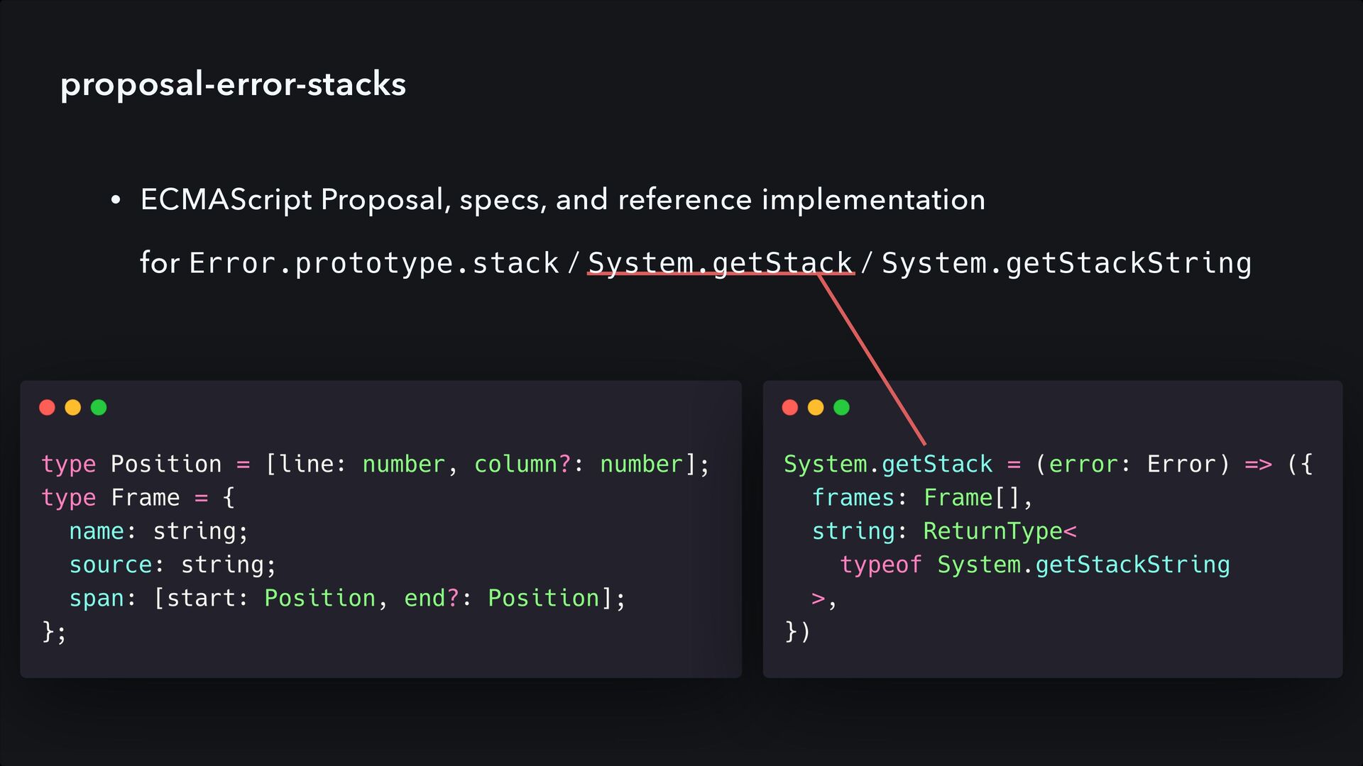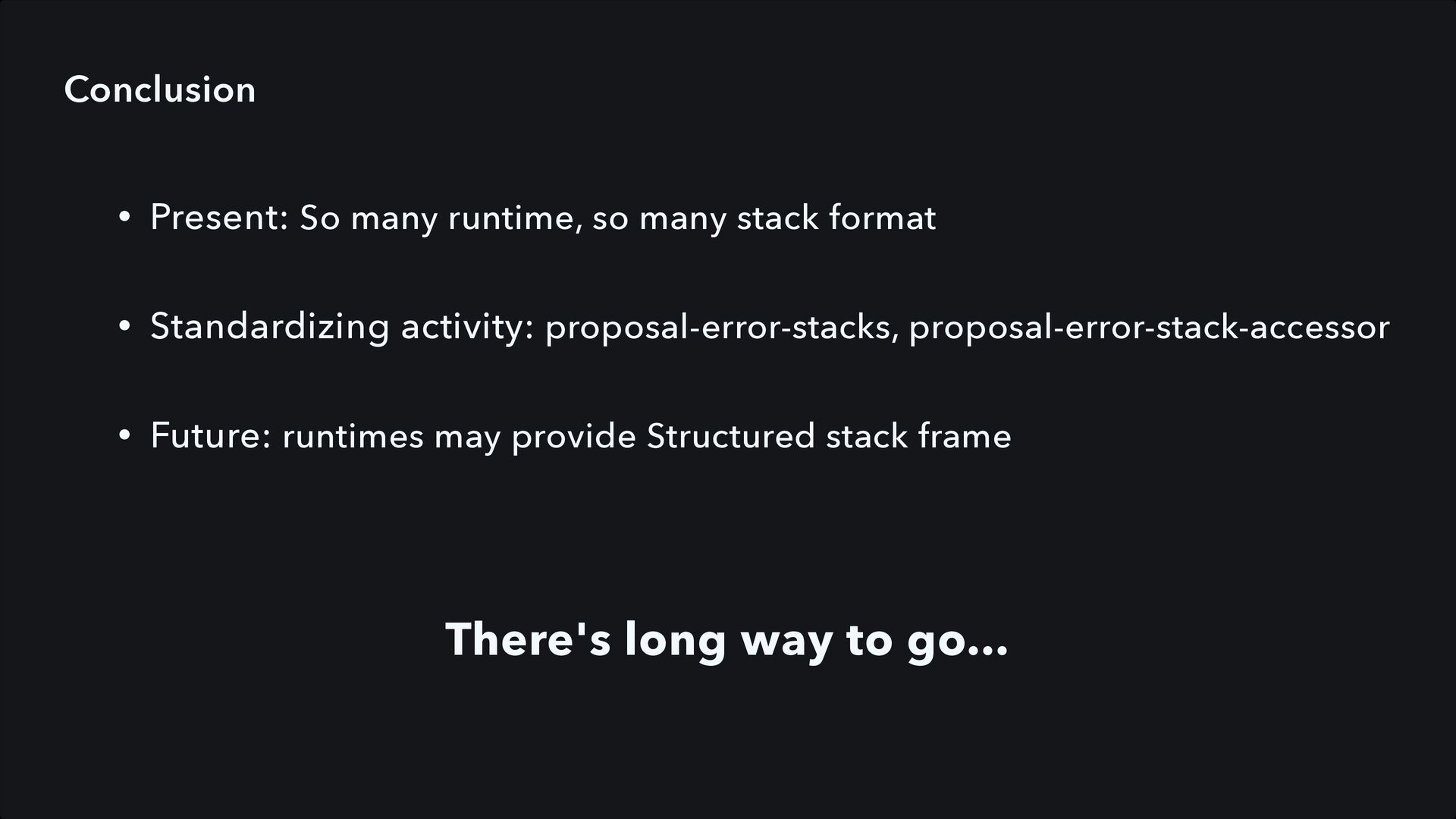 • Standardizing activity: proposal-error-stacks, proposal-error-stack-accessor • Future: runtimes may provide Structured stack frame There's long way to go...