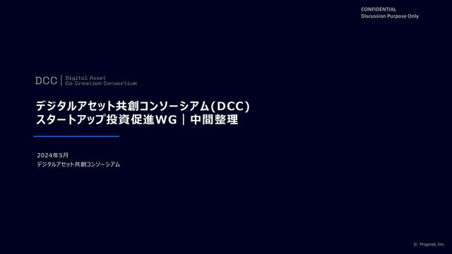 プロダクト 共創 デジタルアセット共創コンソーシアム 共同検討 ・提言 (DCC) 【目的】 デジタルアセット全般を対象とした、 業界横断での新たなエコシステムの共創 【運営概要】 ②業界横断的/新規性の高いテーマを対象に、 ワーキング・グループ(WG)を組成し、任意参加 ③秘密情報の共有範囲を限定し、 会員同士で柔軟に個別プロジェクトを実施 ④プロダクトに係る分権的運営 ①複数関係者間を跨ったWGや個別プロジェクトを 柔軟に進めるため、”包括的な秘密保持契約” として機能(共有範囲を調整し、都度個別の NDA締結を不要化) 【ポイント】 ①入会金/参加費無償 ②入会申込書(Word/押印不要)の電子送付 (事務局で締結手続完了後、会員サイト案内) ③社名非開示のオプション選択可能 © Progmat, Inc. #01 Progmat/DCCと本WGの概要