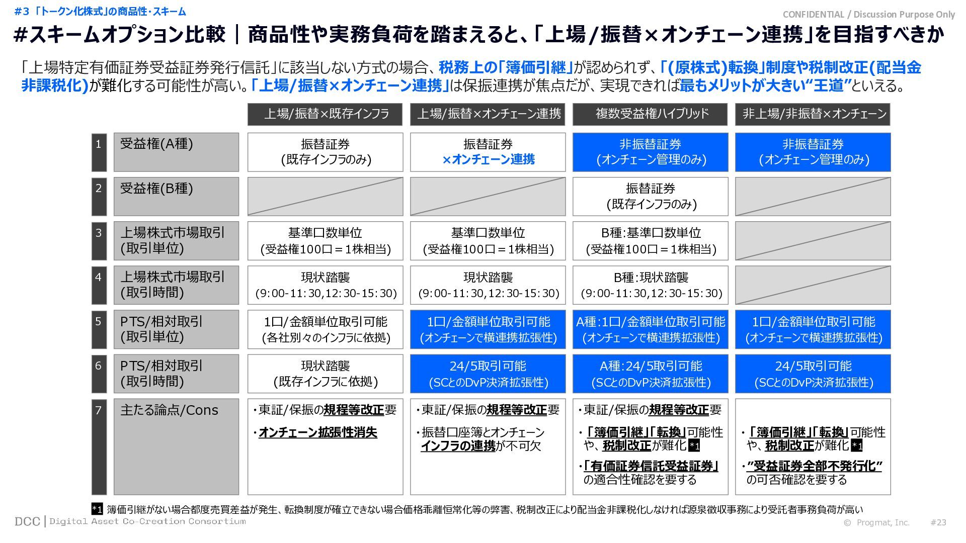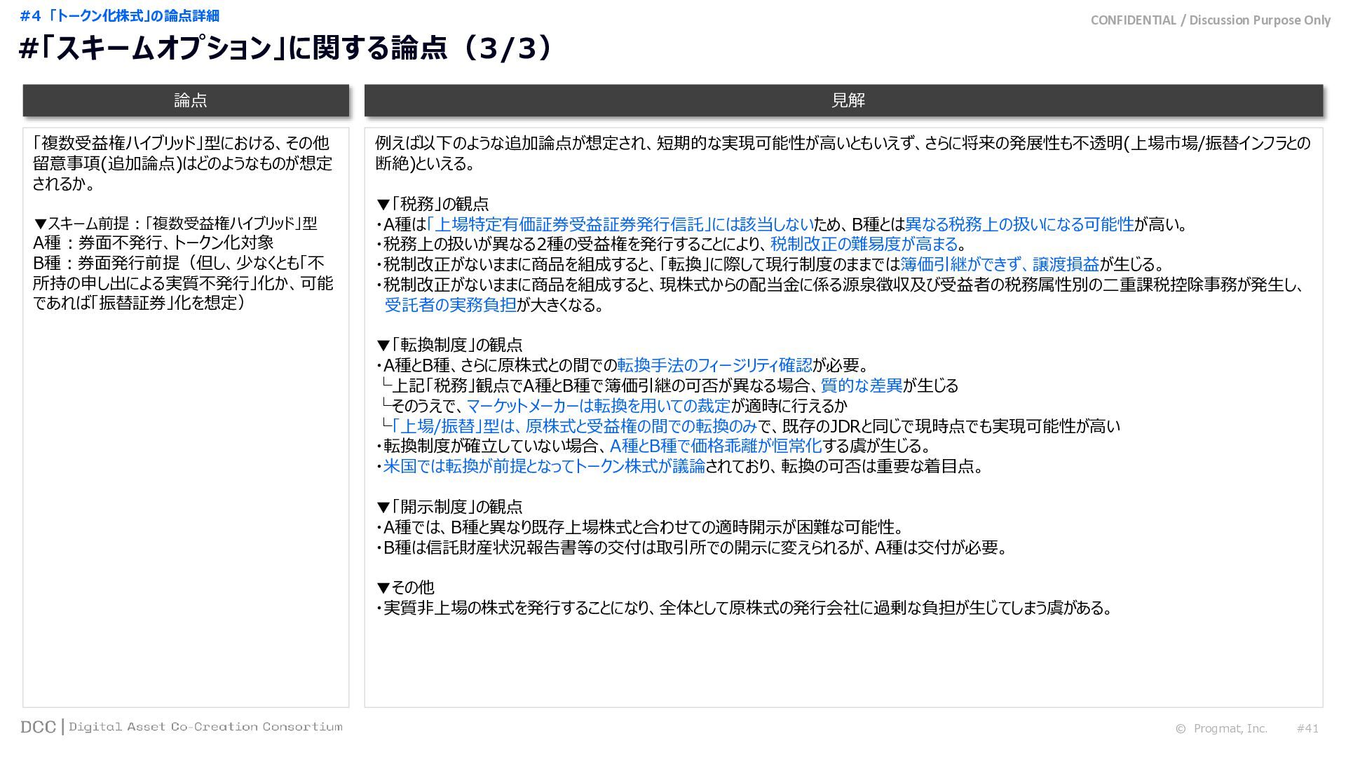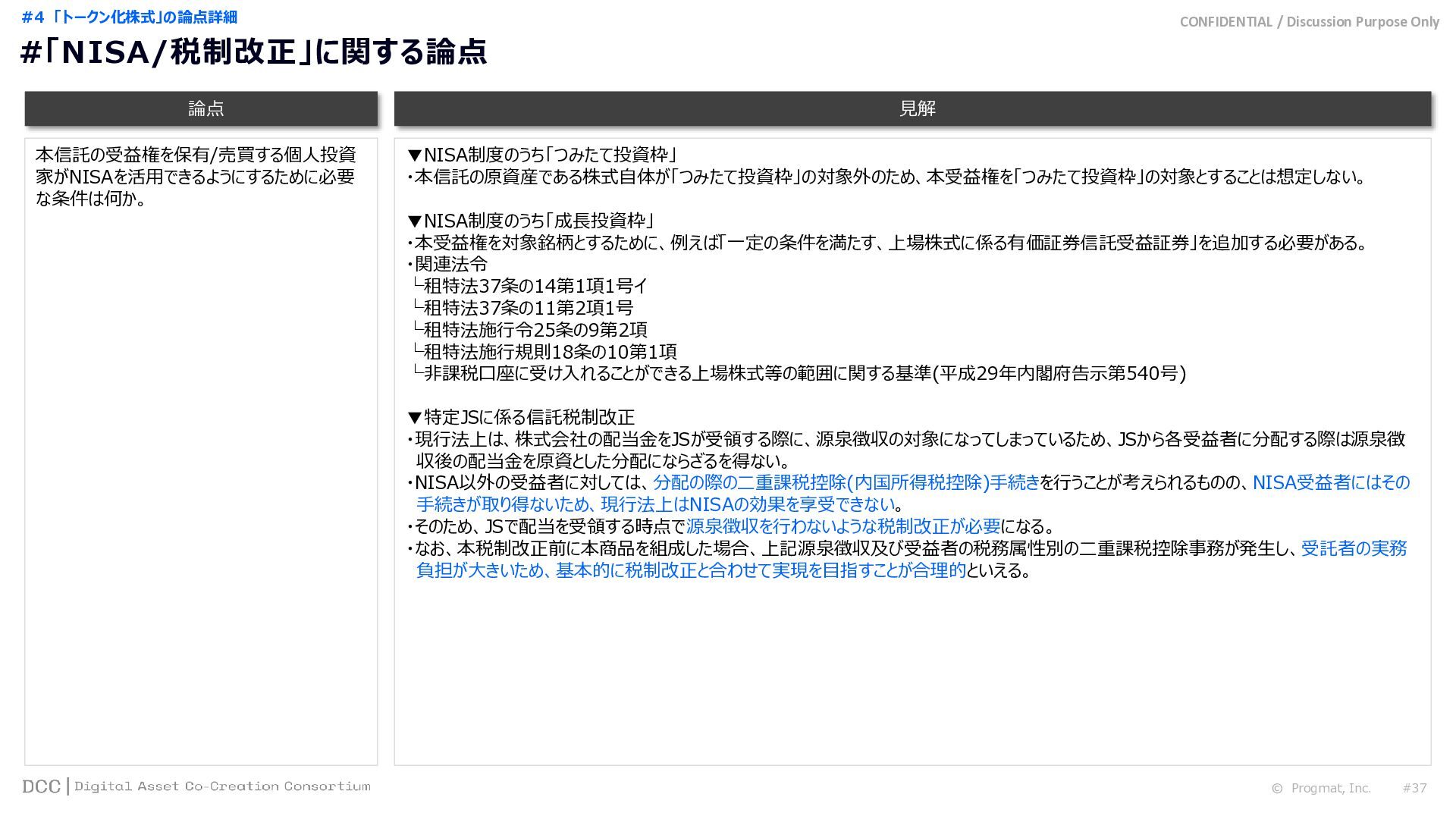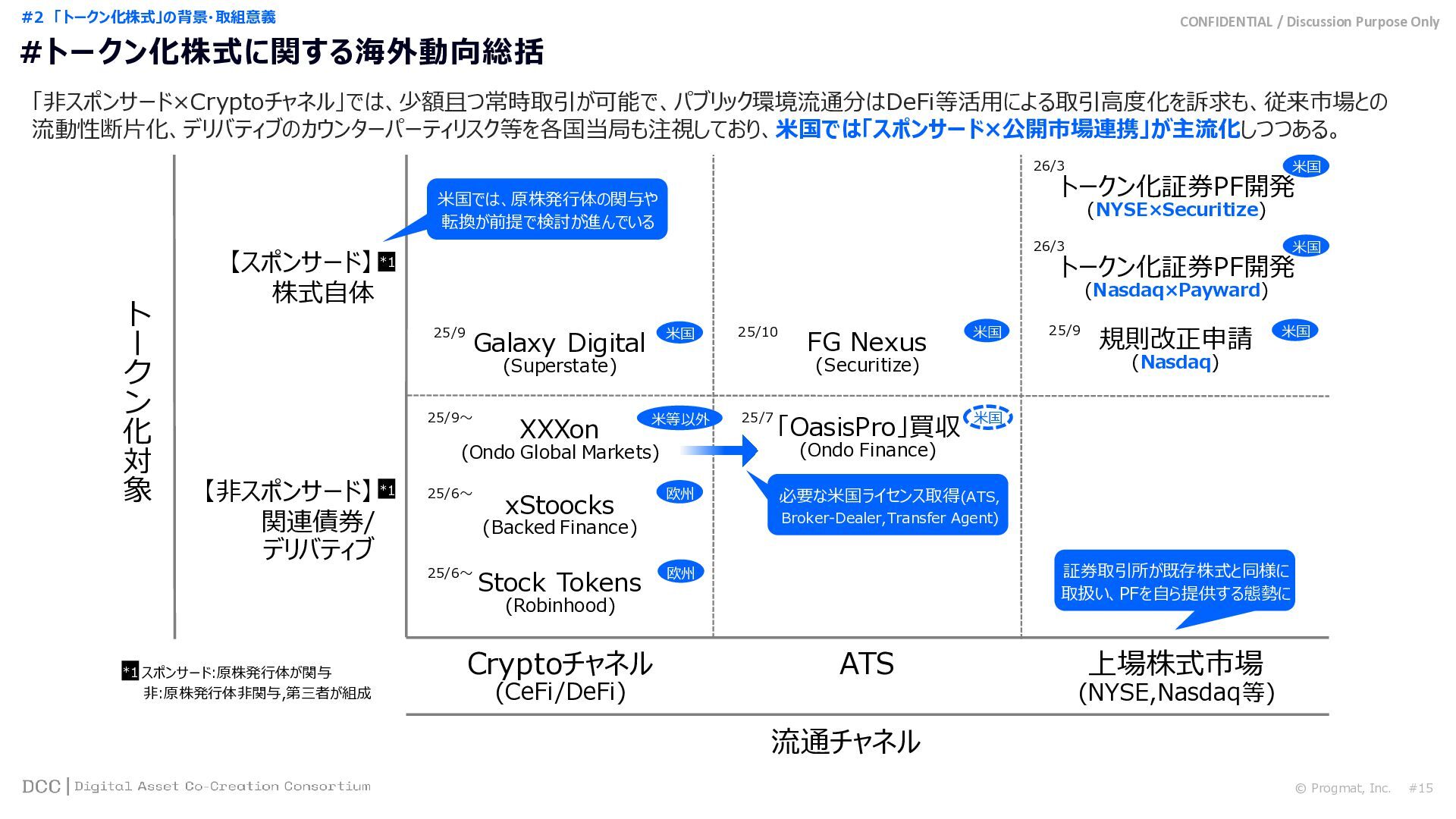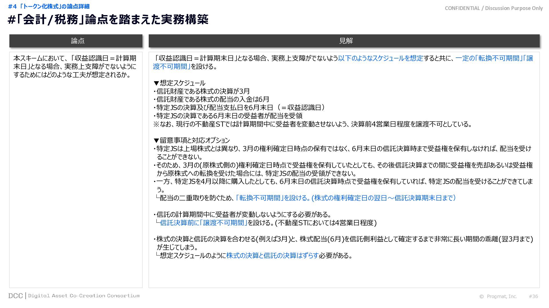 インフラ層 Ⅰ サービス層 Ⅱ Progmat, Inc.…「Core Developer」兼「コンソーシアム(DCC)事務局」 ST UT Coin DCC事務局 信託銀行 A 信託銀行 B 信託銀行 C 銀行 D 銀行 E 証券 F 証券 G エクスチェンジ H コア機能提供 利用料 & 各発行体 役務 対価 Service Developers 株主企業群=アライアンスパートナー 出資 利益還元 スピンアウト (独立化) DCC会員 による 分権運営 インフラ としての 中立的 資本構成 (競争領域) (共創領域) #1 Progmat/DCCと本WGの概要