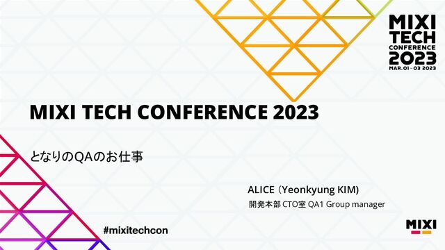 ©MIXI MIXI TECH CONFERENCE 2023 となりのQAのお仕事 開発本部 CTO室 QA1 Group