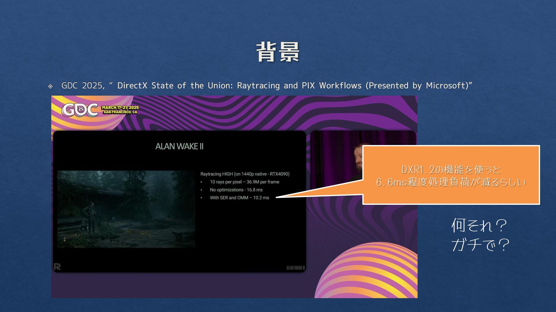 背景 GDC 2025, “DirectX State of the Union: Raytracing and