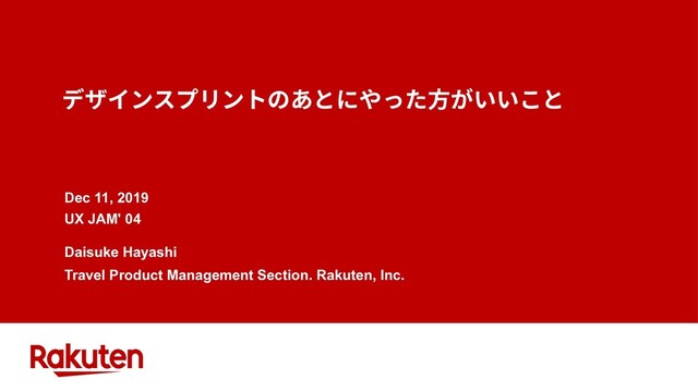 2019年12月11日に開催された「UX JAM' 04」での登壇資料です。 テーマは「デザインスプリントのあとにやった方がいいこと」。私たちがデザインスプリントをやったあとに行ったいくつかのアクティビティについて紹介します。