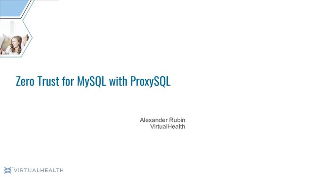 Blacklist queries: restrict access to specific data, i.e. PII/PHI information • Rewrite queries - de-identify data on the fly Example: change the PHI data to FAKE data Alexander Rubin -> John Smith <real phone number> -> 555-555-05-55 User Authorization