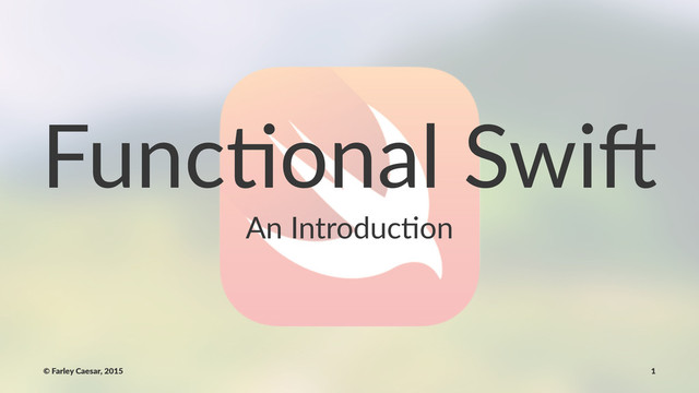 Why Functional? Why Functional in Swift? * Key Aspects of a Functional Approach * Your Functional Tool Box * Swift Value Types vs Reference Types * Application Architecture * Your Advanced Functional Tool Box * Next Steps v1.0%(March%2015) ©"Farley"Caesar,"2015 2