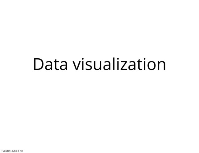 spreadsheet ‣ Timeliner.js tool: http://timeline.verite.co/ ‣ Example from the FT: http://www.ft.com/intl/cms/s/ 0/0cf6001a-90ed-11e0- acfd-00144feab49a.html#axzz2VA977yUH Tuesday, June 4, 13