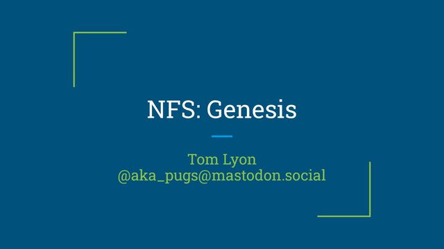 The “¾” solution - .nfsXXXXX files Off to the races! Participants: Bill Joy, Dave Goldberg, Bob Lyon, Tom Lyon, Joe Moran, Rusty Sandberg, Steve Kleiman