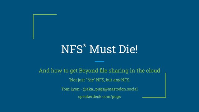 in the cloud *Not just “the” NFS, but any NFS. Tom Lyon - @[email protected] speakerdeck.com/pugs