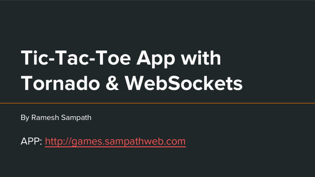 2016 - Ramesh Sampath - Building a Tic-Tac-Toe Two-Player Game using Tornado over Websockets