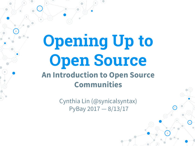 Communities Cynthia Lin (@synicalsyntax) PyBay 2017 — 8/13/17