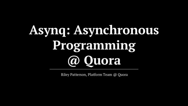 In this talk, we will discuss the design of Quora's asynq framework, which provides an asynchronous API to a global scheduler for data requests. We will explore in depth the common problem that motivated it, the design of the framework, and how it has been used in practice to make both the product and development faster at Quora.