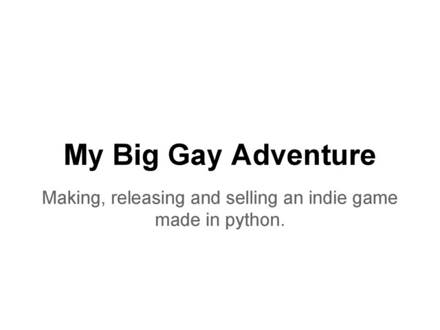 "My big gay adventure. Making, releasing and selling an indie game made in python." by Luke Miller
