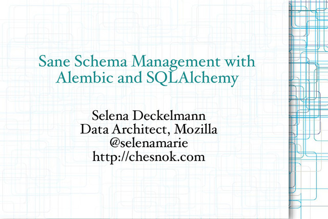 @selenamarie chesnok.com https://speakerdeck.com/selenamarie/sane- schema-management-with-alembic