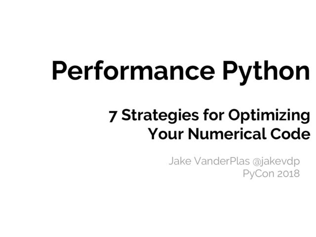 Python provides a powerful platform for working with data, but often the most straightforward data analysis can be painfully slow. When used effectively, though, Python can be as fast as even compiled languages like C. This talk presents an overview of how to effectively approach optimization of numerical code in Python, touching on tools like numpy, pandas, scipy, cython, numba, and more.