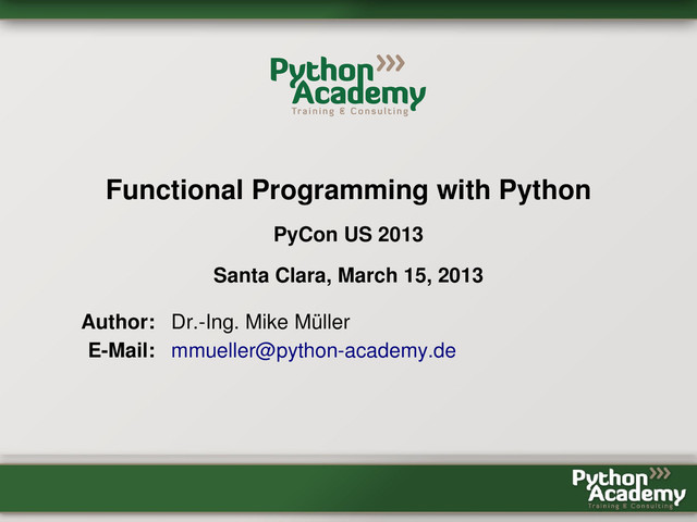 is no pure functional language • For some tasks the functional approach works very well • For some others much less • Combine and switch back and forth with oo and procedural style • "Stay pythonic, be pragmatic"