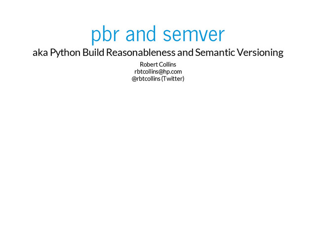 The most interesting part is the version number creation, since coming up with the right version number can be a contentious discussion in some projects. Semver provides simple and robust rules for deciding on version numbers, and I'm in the middle of implementing automation for these in PBR itself, with integration glue to export them in PEP-440, dpkg and rpm format. The only dependencies PBR has are git + a recent pip, so this should be useful for many attendees - and while PBR is an OpenStack invention we're very interested in making sure its useful and reliable for anyone that wants to use it.
