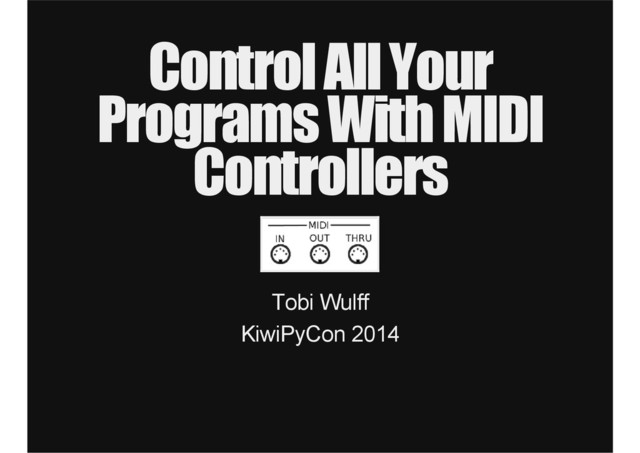 This talk will give a quick overview of the MIDI protocol and controllers which are commonly used to provide input to audio applications. These controllers can have the form of a musical keyboard, a mixer with knobs, sliders and buttons, or a combination of those. Some other variants use touch-sensitive trackpads or look like a drum kit. Then, the talk will go over the following tools: Python (duh), mididings (to receive and manipulate MIDI messages), xte (send keystrokes and mouse events to the Linux Xorg server) and some other necessary programs such as jackd to virtually connected MIDI inputs and outputs. I'll describe the steps needed to bring all those tools together and make it extensible to (hopefully, eventually) work on other OS as well.
