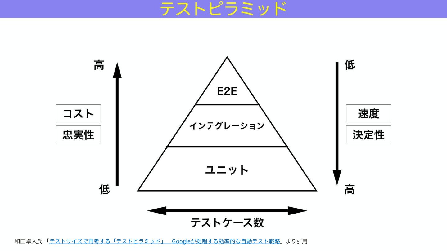 E2Eテストを包括した前提で 話します