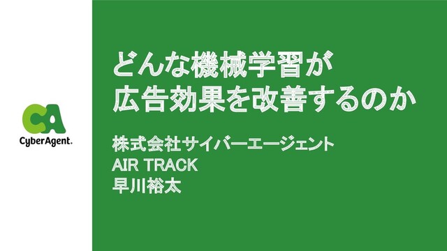 どんな機械学習が 広告効果を改善する か 株式会社サイバーエージェント AI ACK 早川裕太