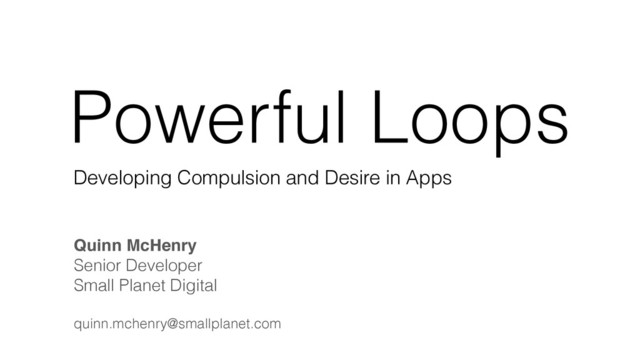 Compulsion loops are operant conditioning applied to everyday activities like playing games, sharing stuff on social websites, or scratching a lottery ticket. Compulsion loops have been gaining attention, both positively and negatively, as their reach and impact has grown. In this presentation, we look at a bit of the science behind these powerful loops and how that applies to making better apps.
