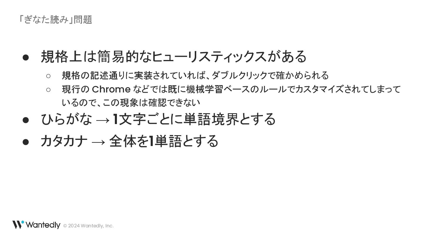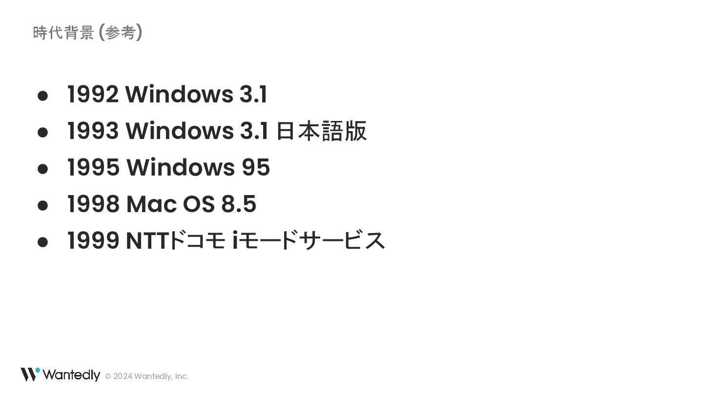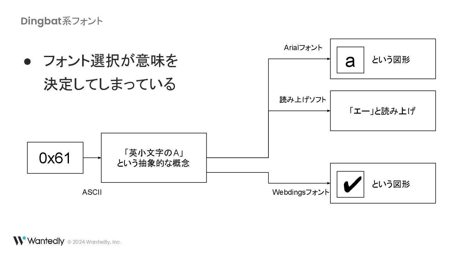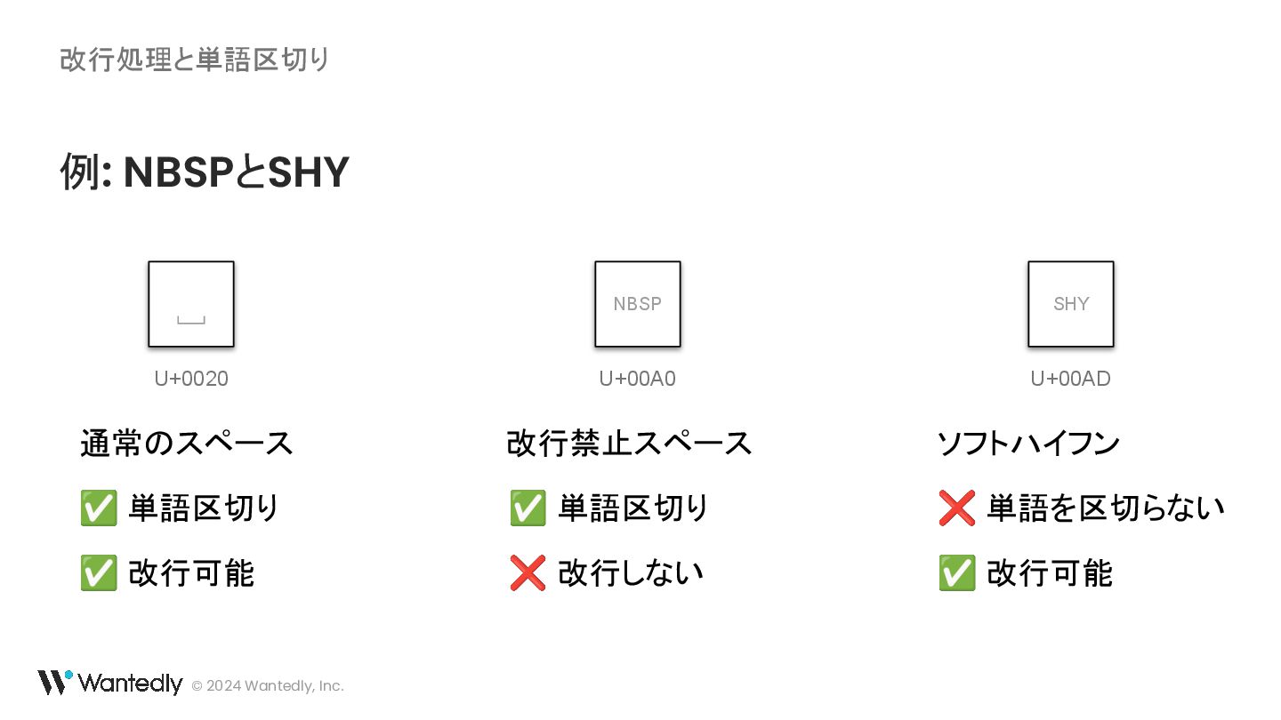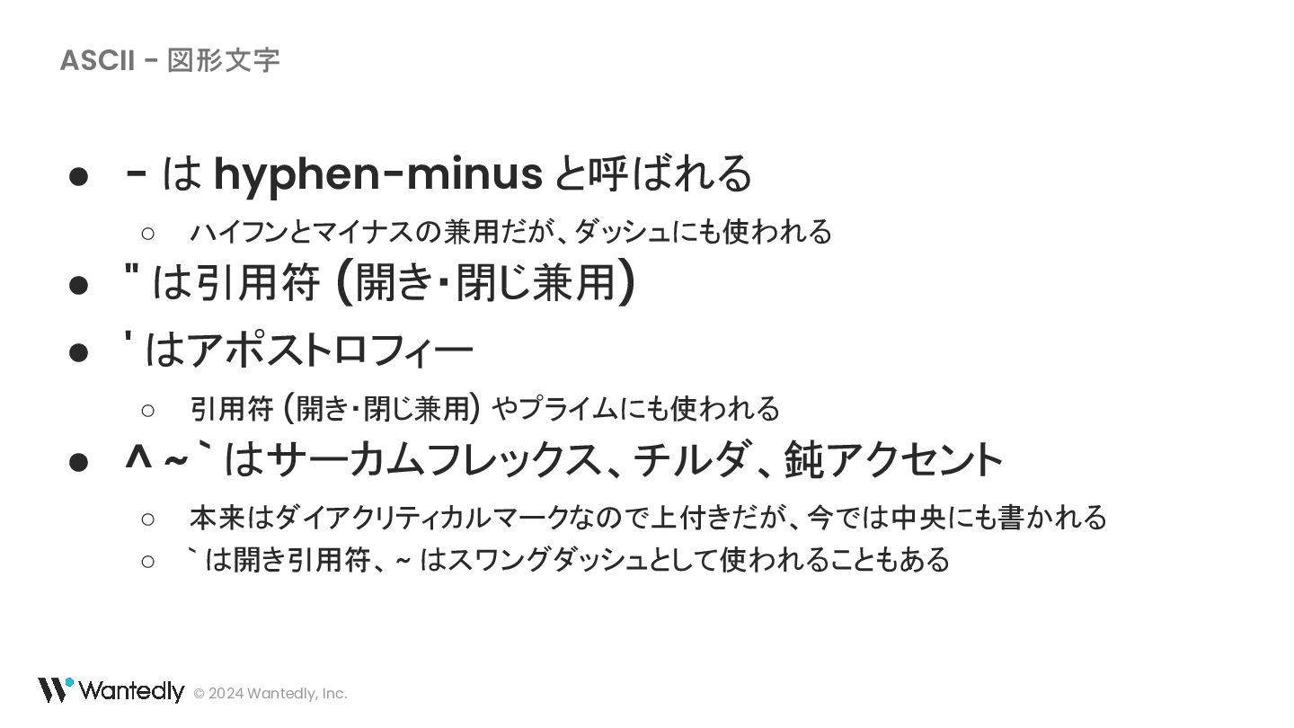 結果として、文字集合のバージョン差異に対しても厳密に動作する ◦ ASCIIと JIS X 0201 ラテン文字用文字集合も区別できる ◦ 初期版では漢字集合をJIS78とJIS83から選択可能 • JIS X 0201 仮名文字 (いわゆる半角カナ) は使わない ◦ ISO/IEC 2022上は ESC ( I で指示できるため、非公式に対応しているケースもある