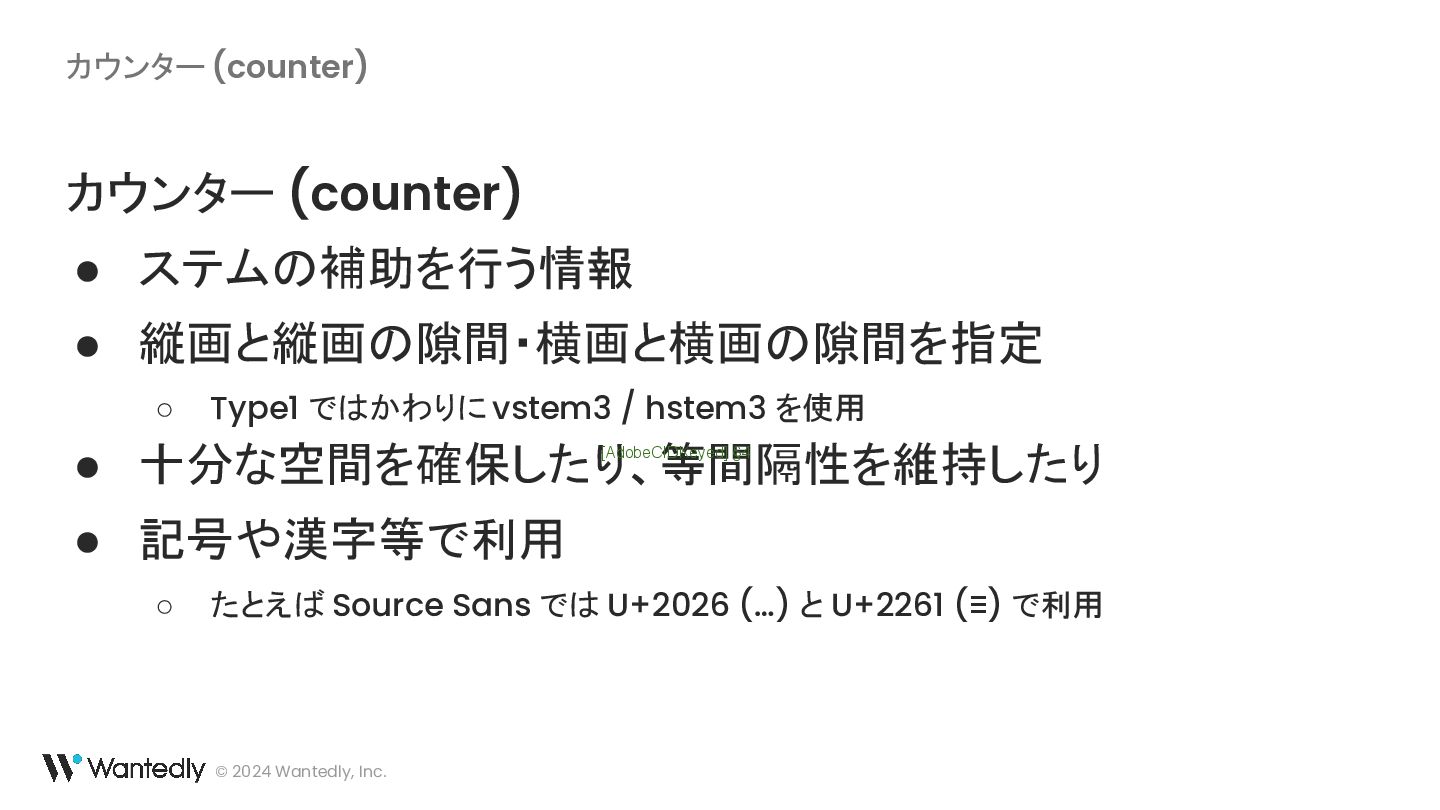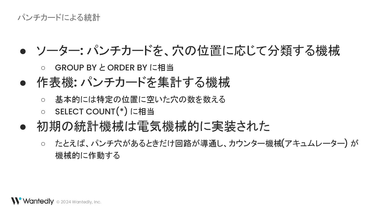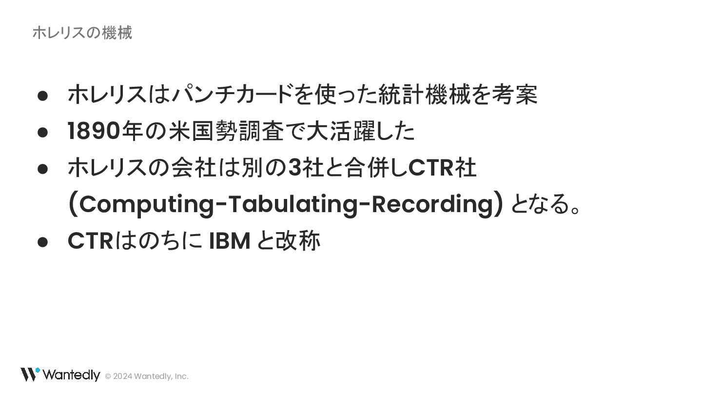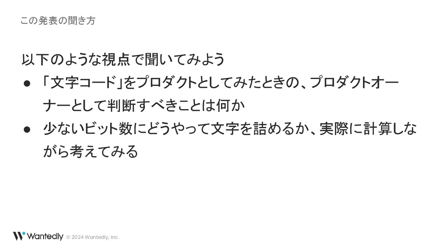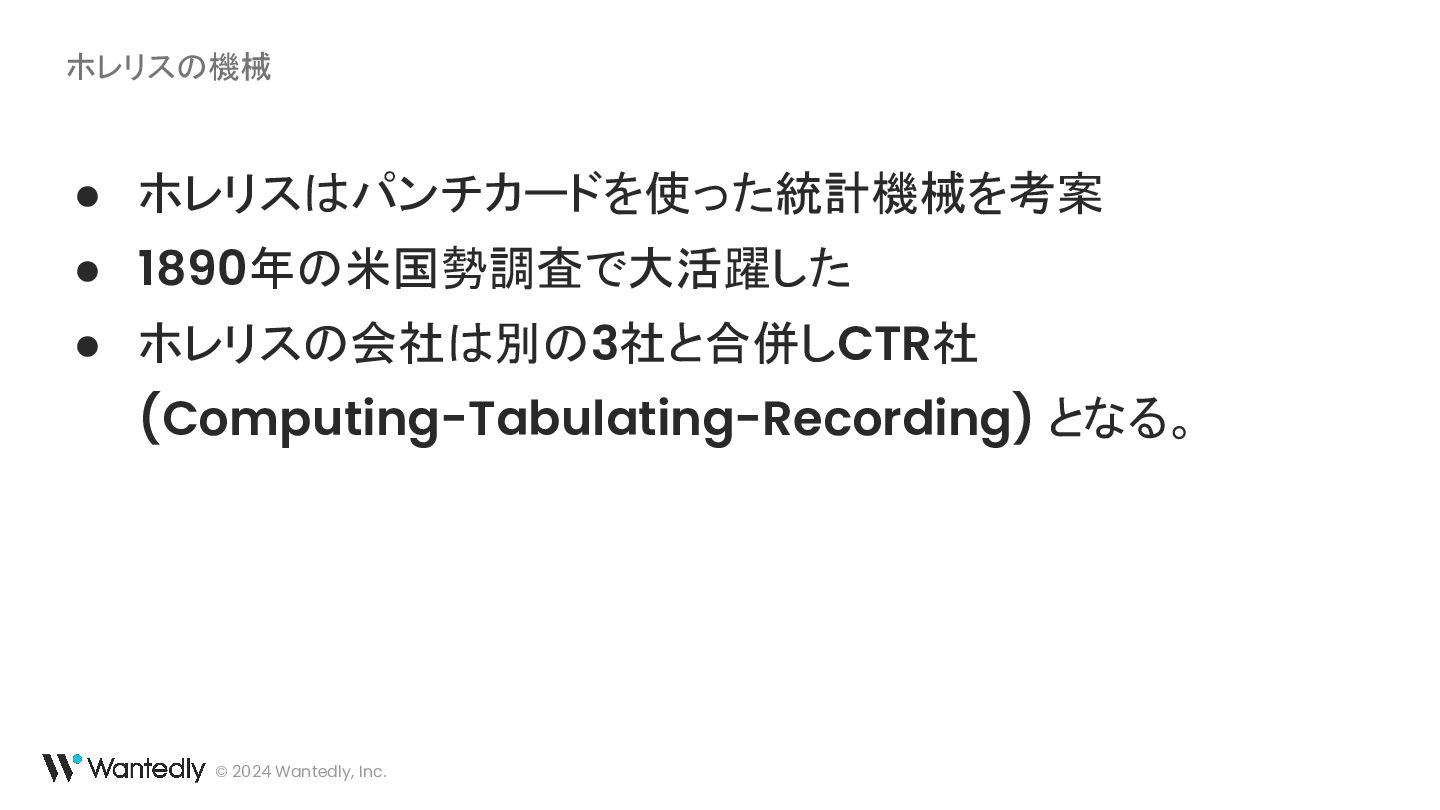+ 2bitで表せる → BCD (Binary Coded Decimal) x0 x1 x2 x3 x4 x5 x6 x7 x8 x9 xA xB xC xD xE xF 0x space 1 2 3 4 5 6 7 8 9 0 # @ 1x / S T U V W X Y Z , % 2x - J K L M N O P Q R $ * 3x & A B C D E F G H I . ⌑ 初期のBCD (1950年頃) 6bitコードには他にECMA-1やFieldataなどもある