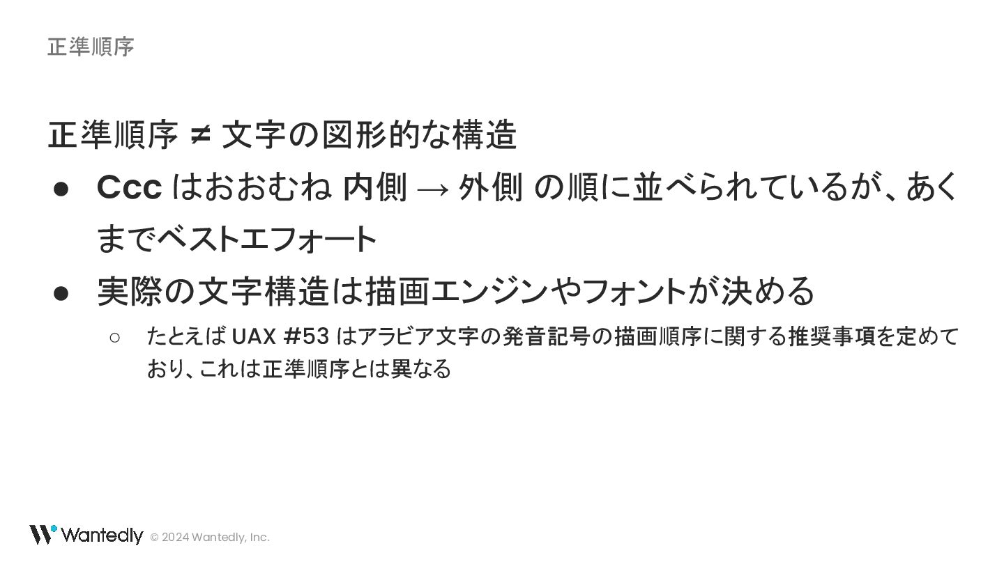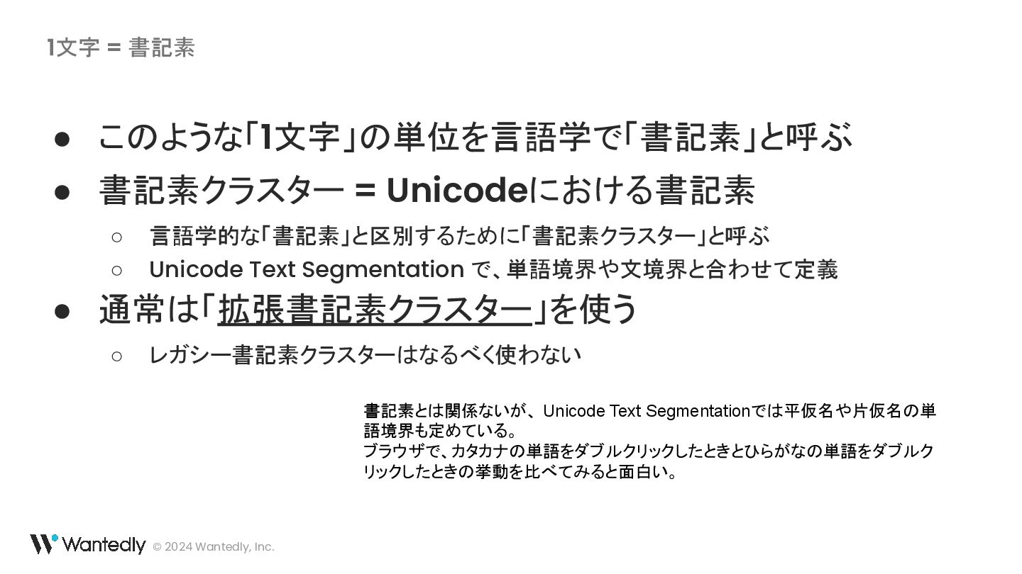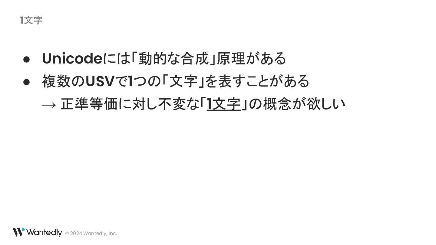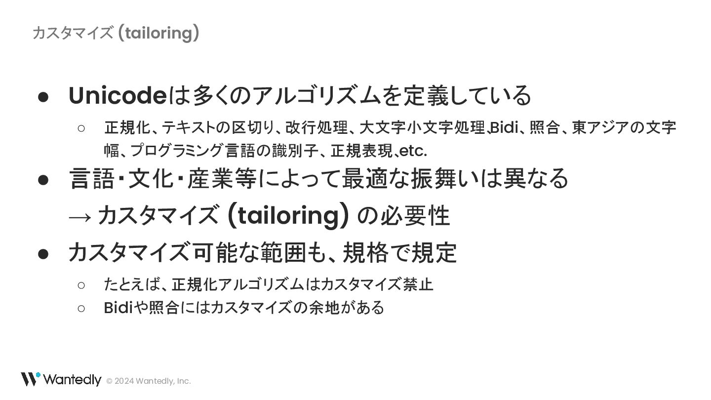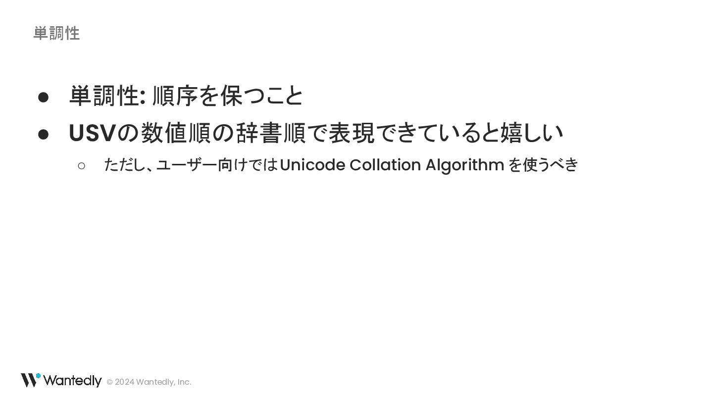 AC FE FF 30 AC FF FE AC 30 U+30AC BE, No BOM BE, BOM LE, BOM U+FEFF または U+FFFE で 始まる場合はBOMが必須だが、 こうしたケースはほぼないと考えてよい ギ U+30AC 3通りのエンコード 方法がある (どれでも良い) BOM (バイト順マーク) [Unicode] §3.10
