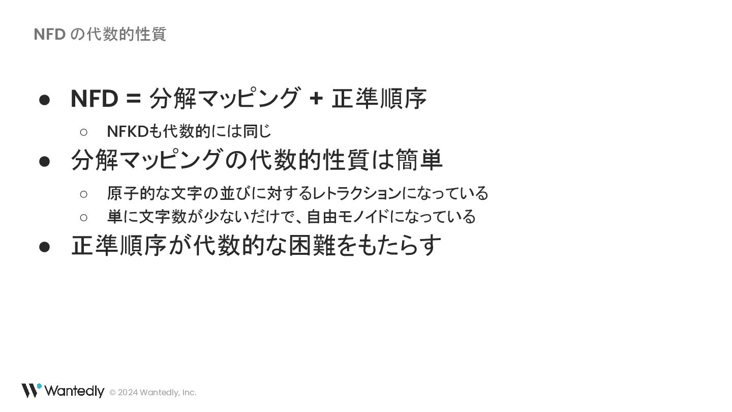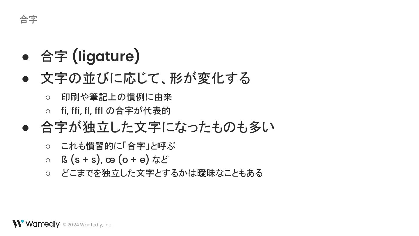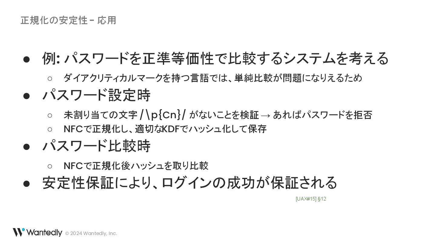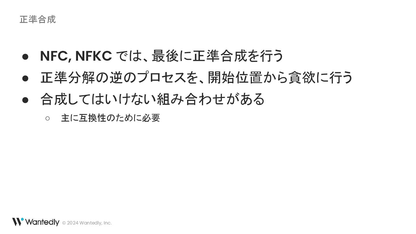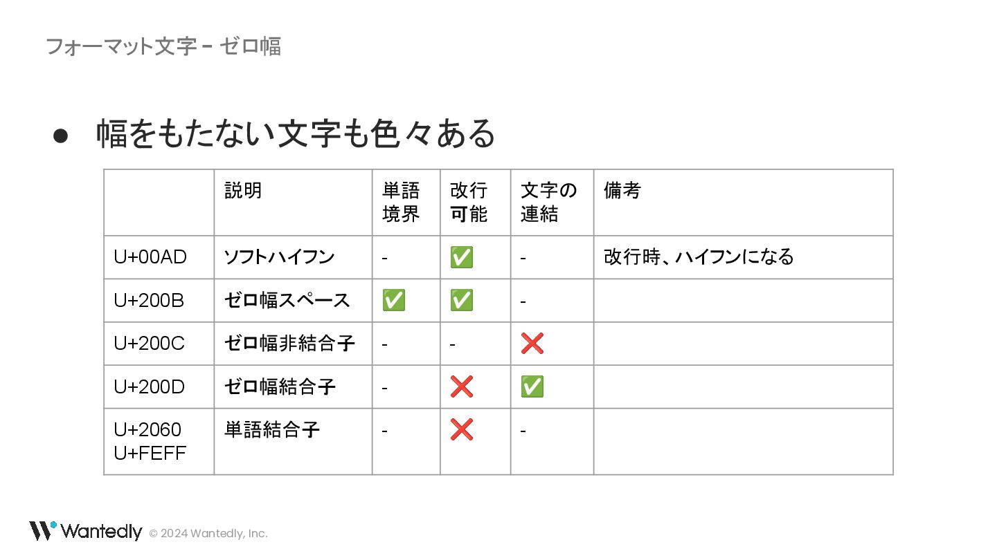 AC FE FF 30 AC FF FE AC 30 U+30AC BE, No BOM BE, BOM LE, BOM U+FEFF または U+FFFE で 始まる場合はBOMが必須だが、 こうしたケースはほぼないと考えてよい ギ U+30AC 3通りのエンコード 方法がある (どれでも良い) BOM (バイト順マーク) [Unicode] §3.10