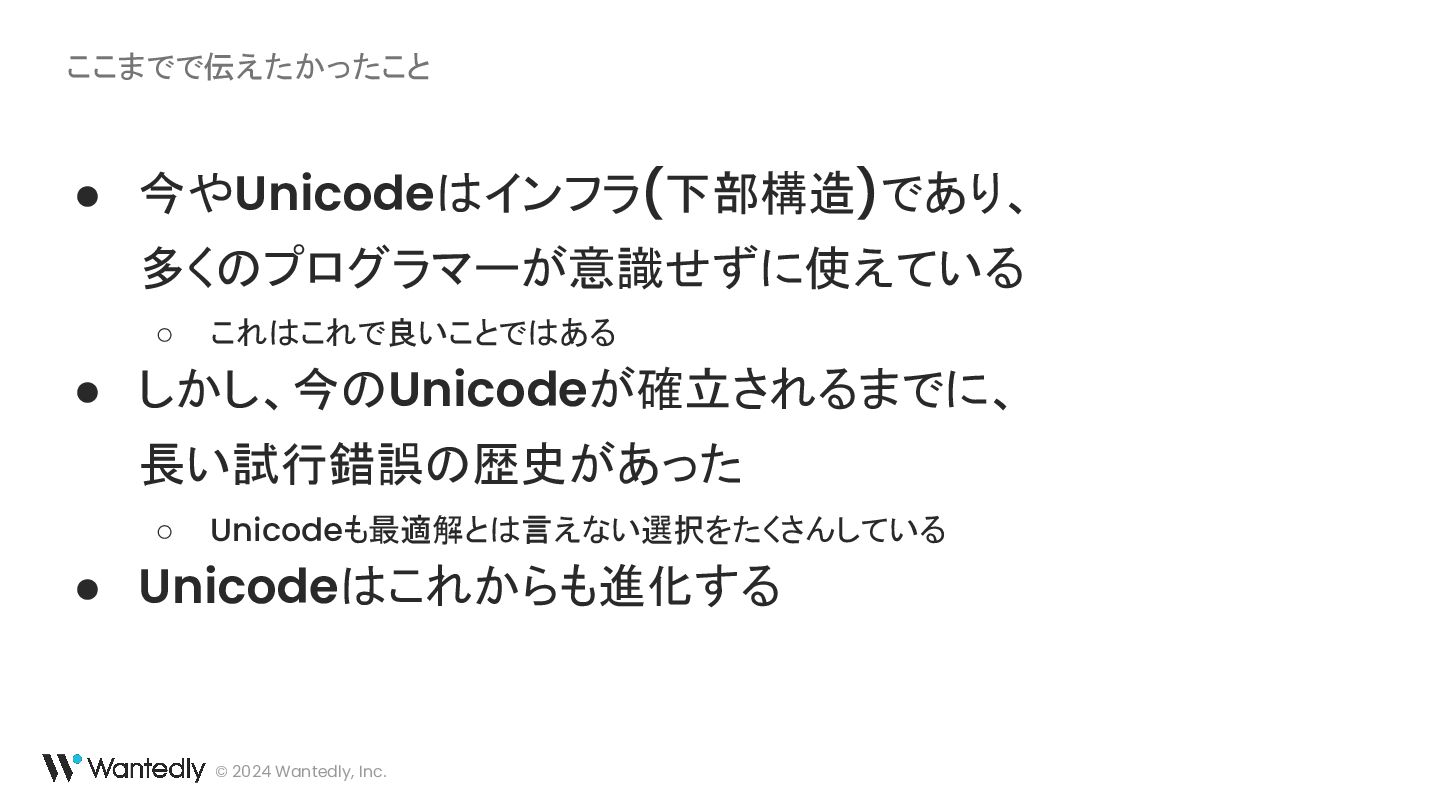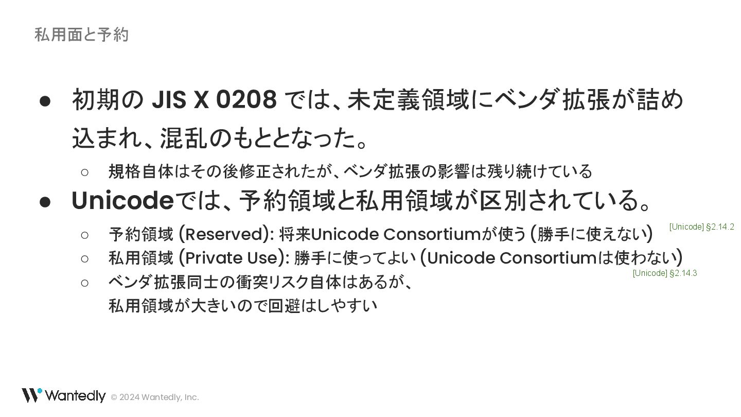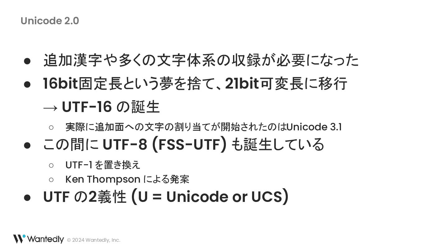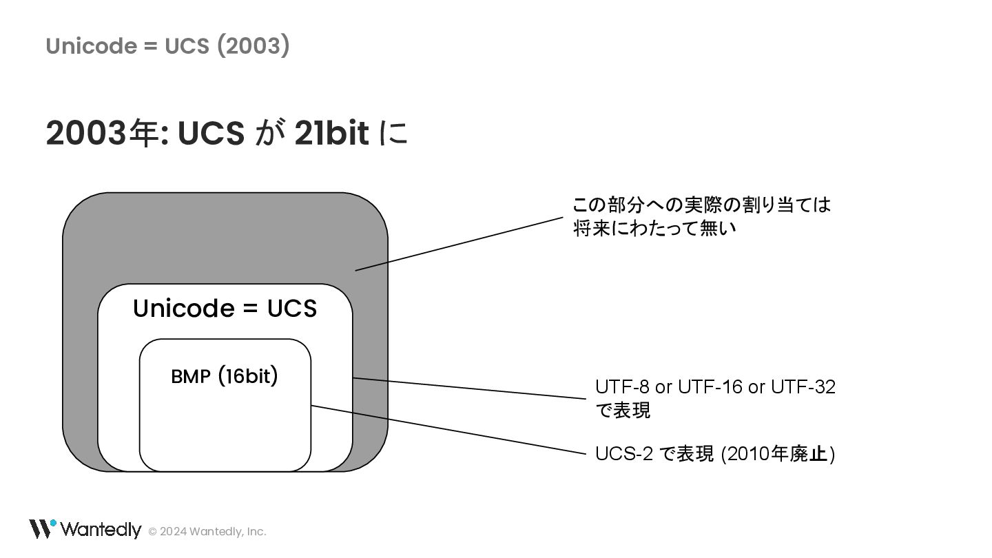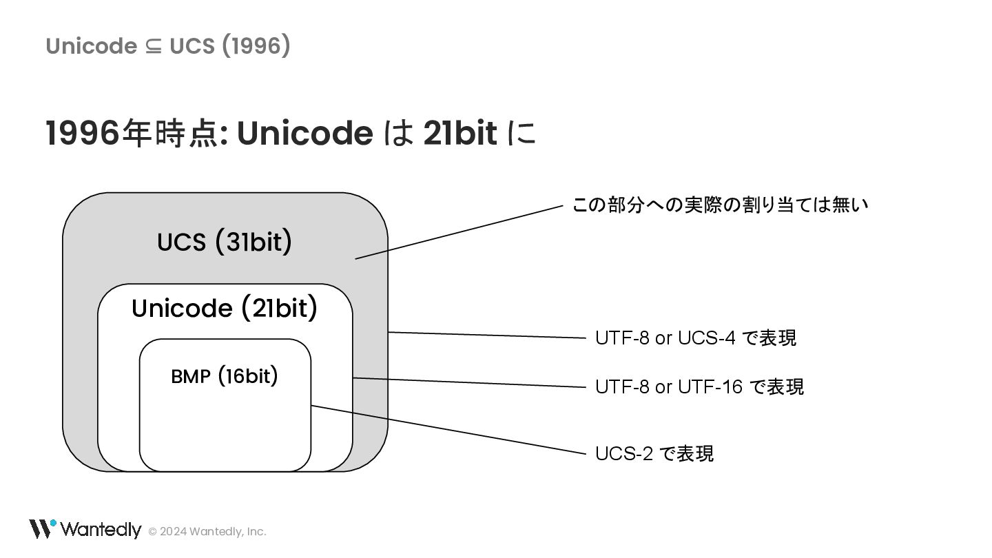 Information Technology — Universal coded character set (UCS) https://www.iso.org/standard/76835.html [n0783] Working document for ISO/IEC Draft International Standard 10646-1.2 ISO/IEC DIS 10646-1.2, 1991, obtained at Historical Directory of the UTC Document Registry https://www.unicode.org/L2/Historical/ [Yasuoka2006] 文字符号の歴史―欧米と日本編―, 安岡孝一・安岡素子, 共立出版, 2006 初版第1刷, ISBN 9784320121027 https://www.kyoritsu-pub.co.jp/book/b10010457.html [UNarrative] Summary Narrative — History of Unicode https://www.unicode.org/history/summary.html, obtained at 2025-11-15, http://web.archive.org/web/20251004185748/https://www.unicode.org/history/summary.html [UChrono] Chronology of Unicode Version 1.0 — History of Unicode https://www.unicode.org/history/versionone.html, obtained at 2025-11-15, http://web.archive.org/web/20251004185748/https://www.unicode.org/history/summary.html