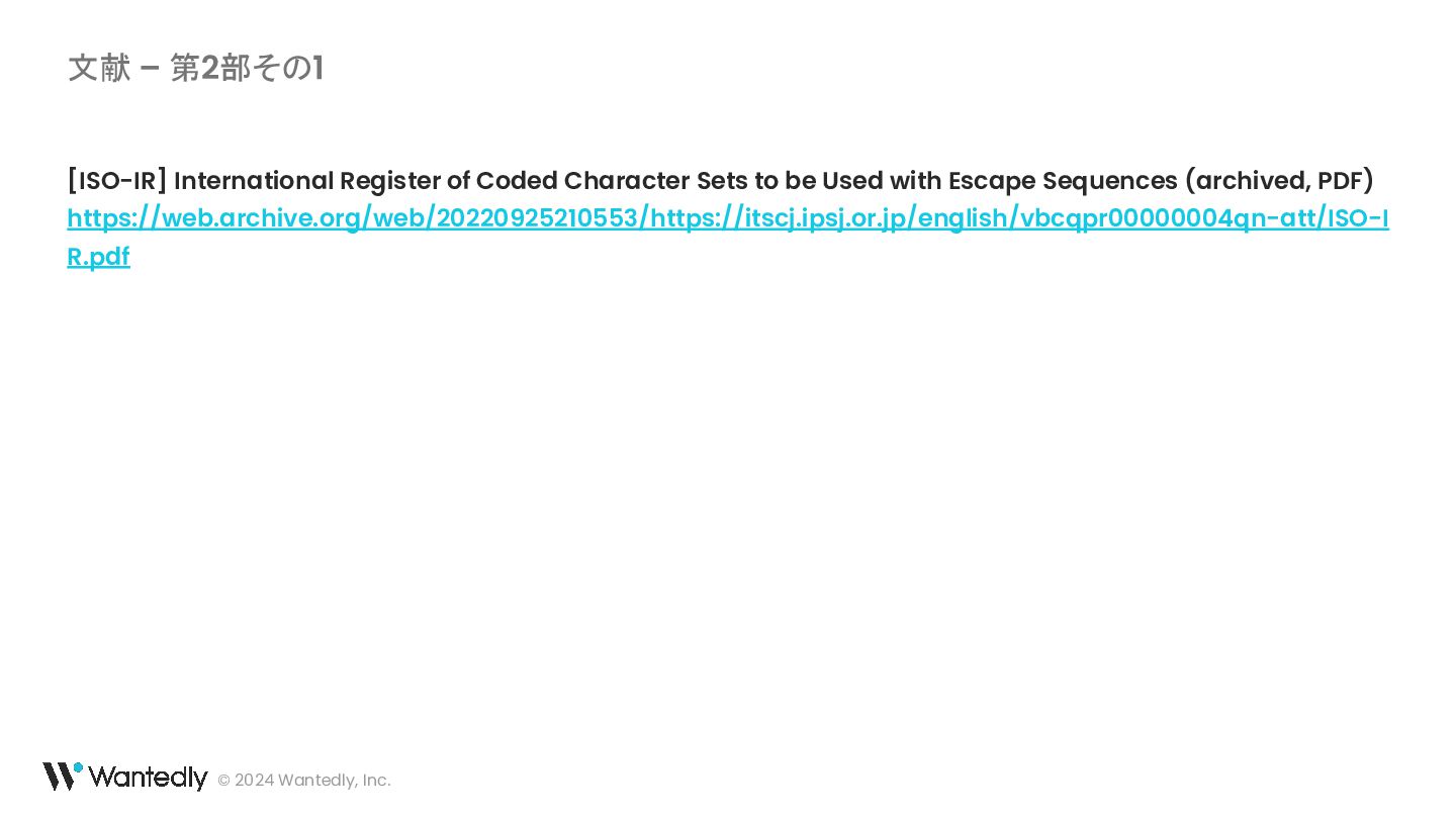 of Coded Character Sets to be Used with Escape Sequences (archived, PDF) https://web.archive.org/web/20220925210553/https://itscj.ipsj.or.jp/english/vbcqpr00000004qn-att/ISO-I R.pdf