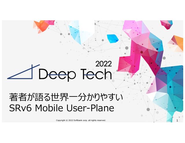 Network Programming nSegmentが提供する機能(Function)を定義する n実⾏する機能をIPv6 Addressの中にエンコーディングする Locator Function Argument 128bit IPv6 Address A B C D E X F 2001:DB8:0:B:(Locator) Payload SRH(A,B,E,F) Src=X, Dst=F 1:1: à func1 1:2: à func2 Next Header Hdr Ext Length Routing Type Segment Left = 3 Last Entry Flags Tags Segment List[0] 2001:DB8::F Segment List[1] 2001:DB8::E Segment List[2] 2001:DB8:0:B:1:1::1 Segment List[3] 2001:DB8::A