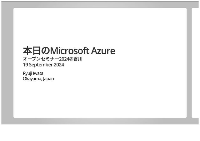 2024年9月14日(土)に香川で開催された「オープンセミナー2024@香川」での私の登壇資料「本日のMicrosoft Azure」です。本イベントのメインセッションからFDW、TinyGo、セキュリティ、フィッシングキットをキーワードにMicrosoft Azureとの関係性を見つけてみました。