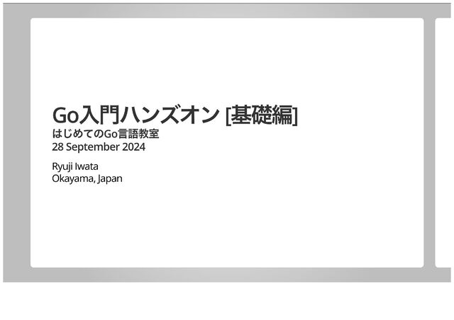 「はじめてのGo言語教室」のGo入門ハンズオン基礎編のテキスト(2024年9月28日版)です。