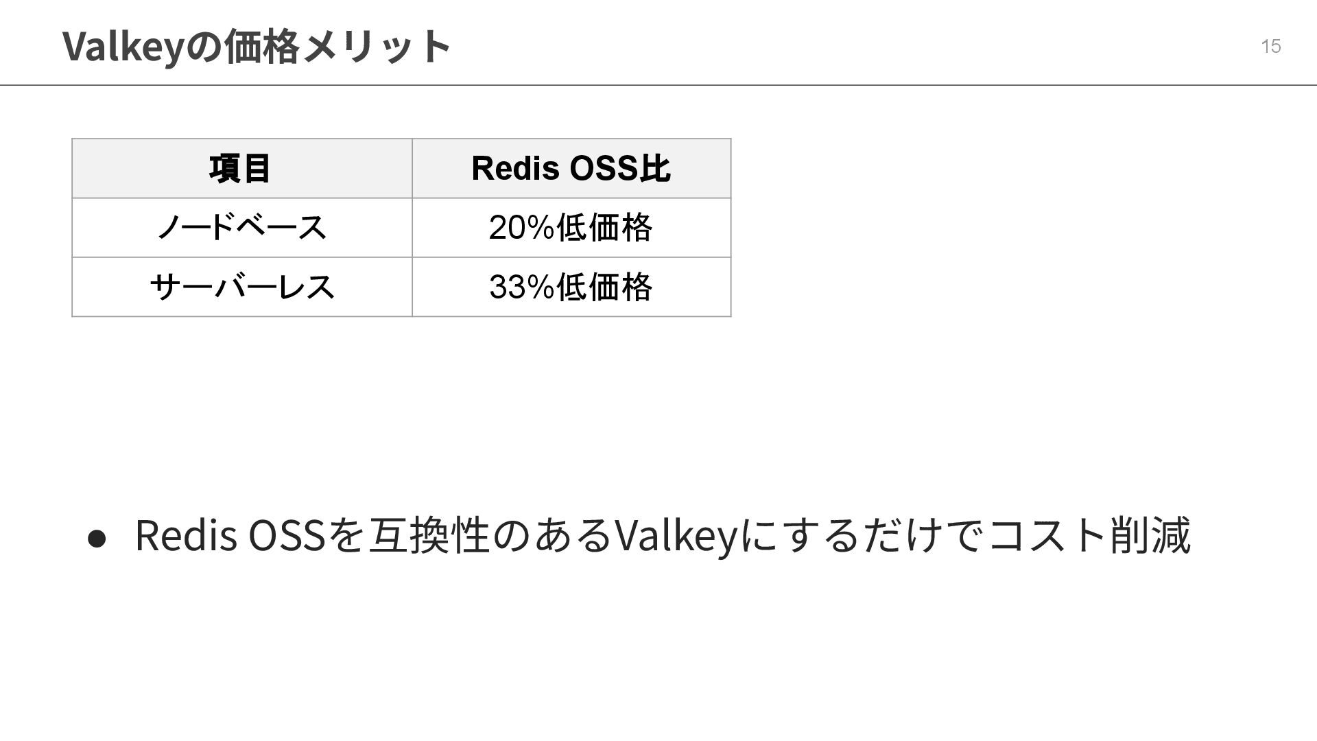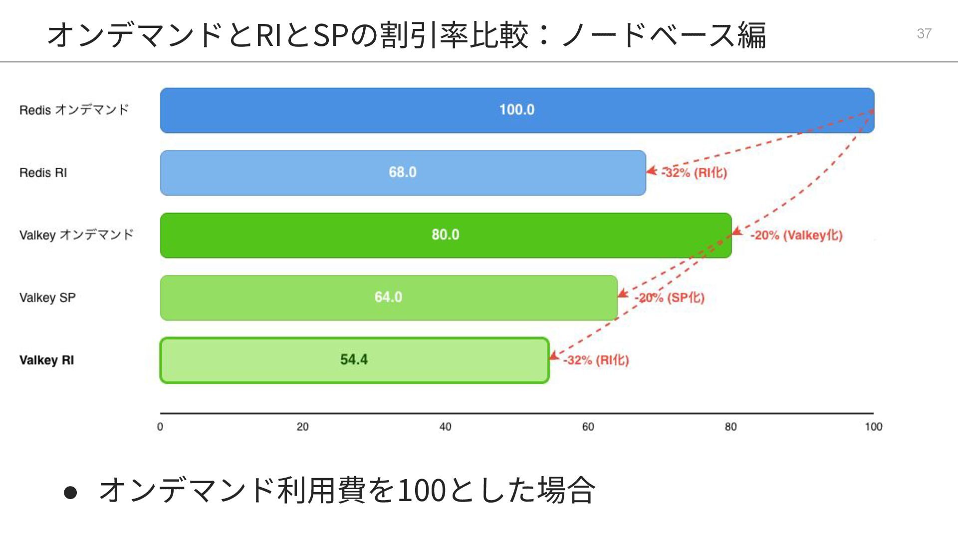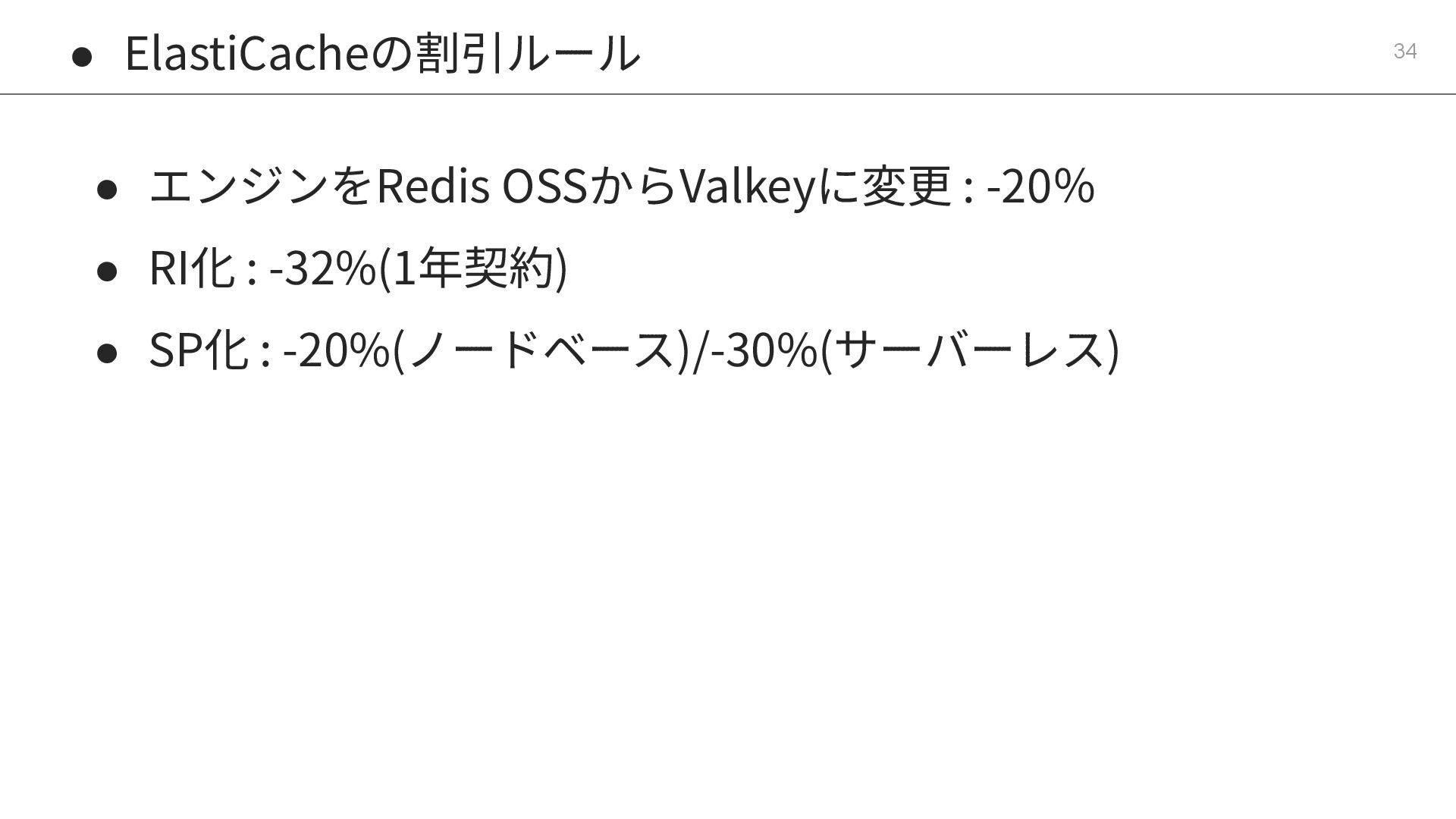 12. • ElastiCacheの割引ルール 34 • エンジンをRedis OSSからValkeyに変更 : -20% • RI化