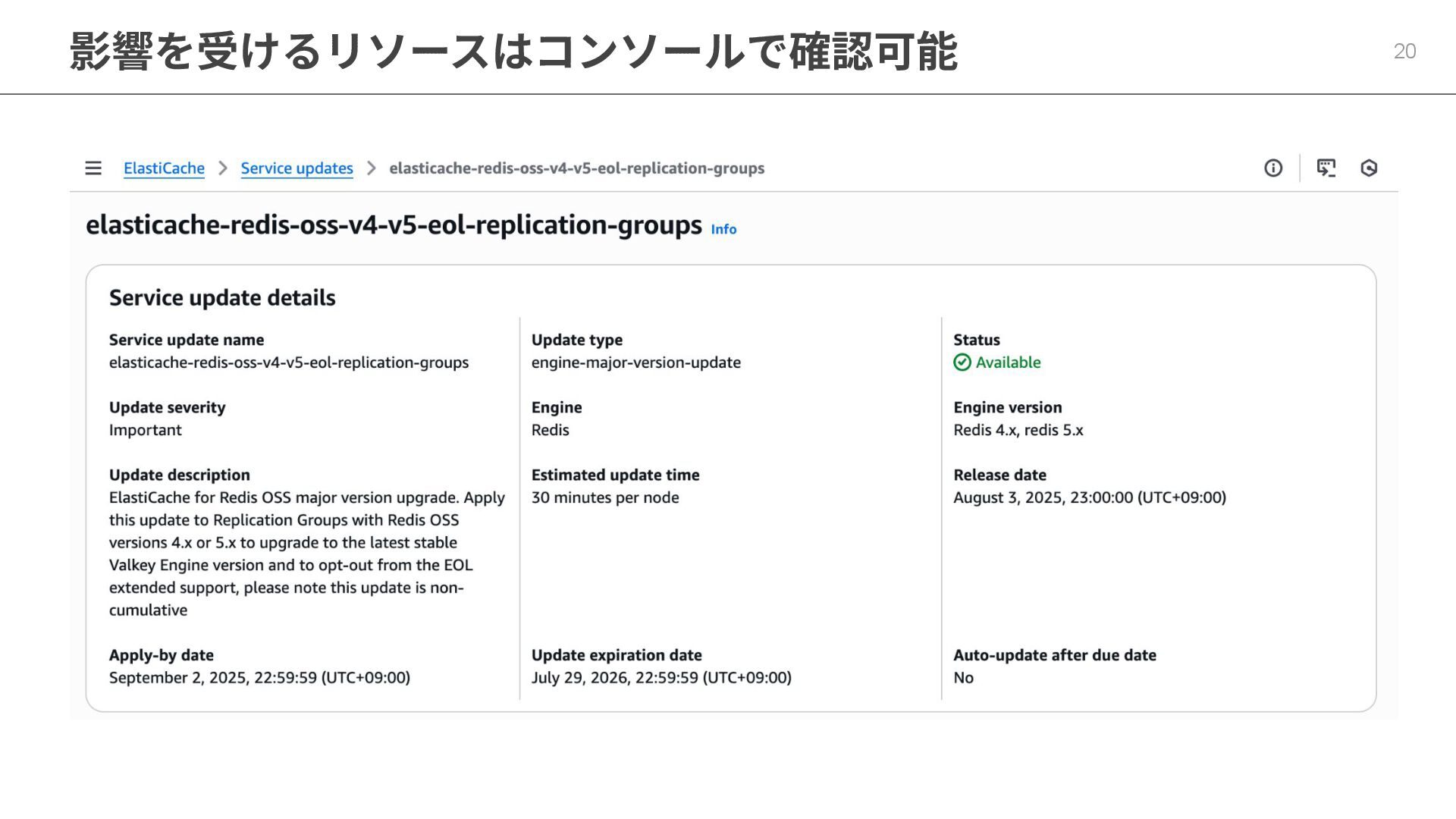 8. メジャーアップグレードする(Valkey化) 28 • メリット ◦ Extended Support料⾦を回避 ▪ Valkey化でさらに20%引き ◦