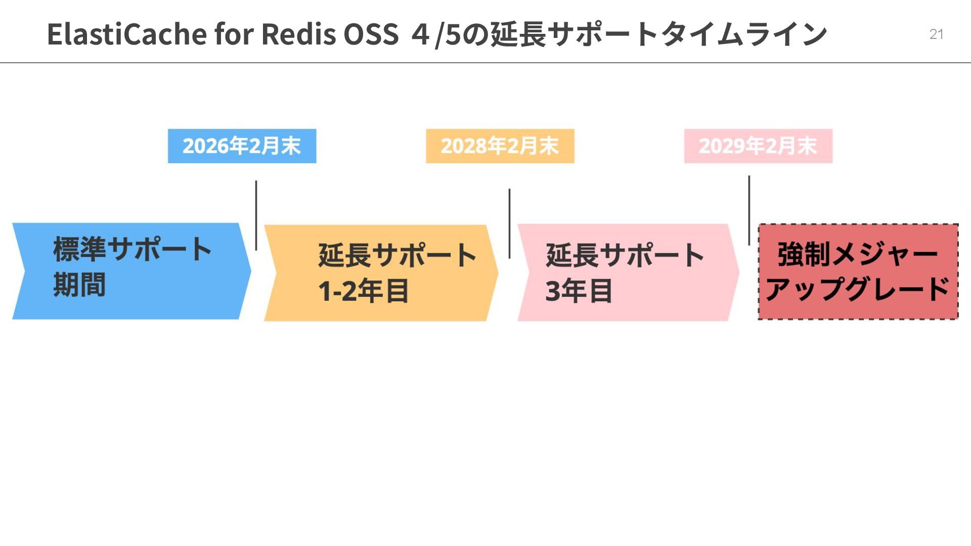 16. 本⽇のテーマ : 2026年1⽉版ElastiCacheのコスト最適化 47 1. ElastiCache Redis 4/5を2026年2⽉以降も使い続けると、延 ⻑サポート料⾦が発⽣ 2.