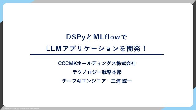© CCC MK HOLDINGS Co.,Ltd. All Rights Reserved. DSPyとMLflowで LLMアプリケーションを開発! CCCMKホールディングス株式会社 テクノロジー戦略本部 チーフAIエンジニア 三浦 諒一
