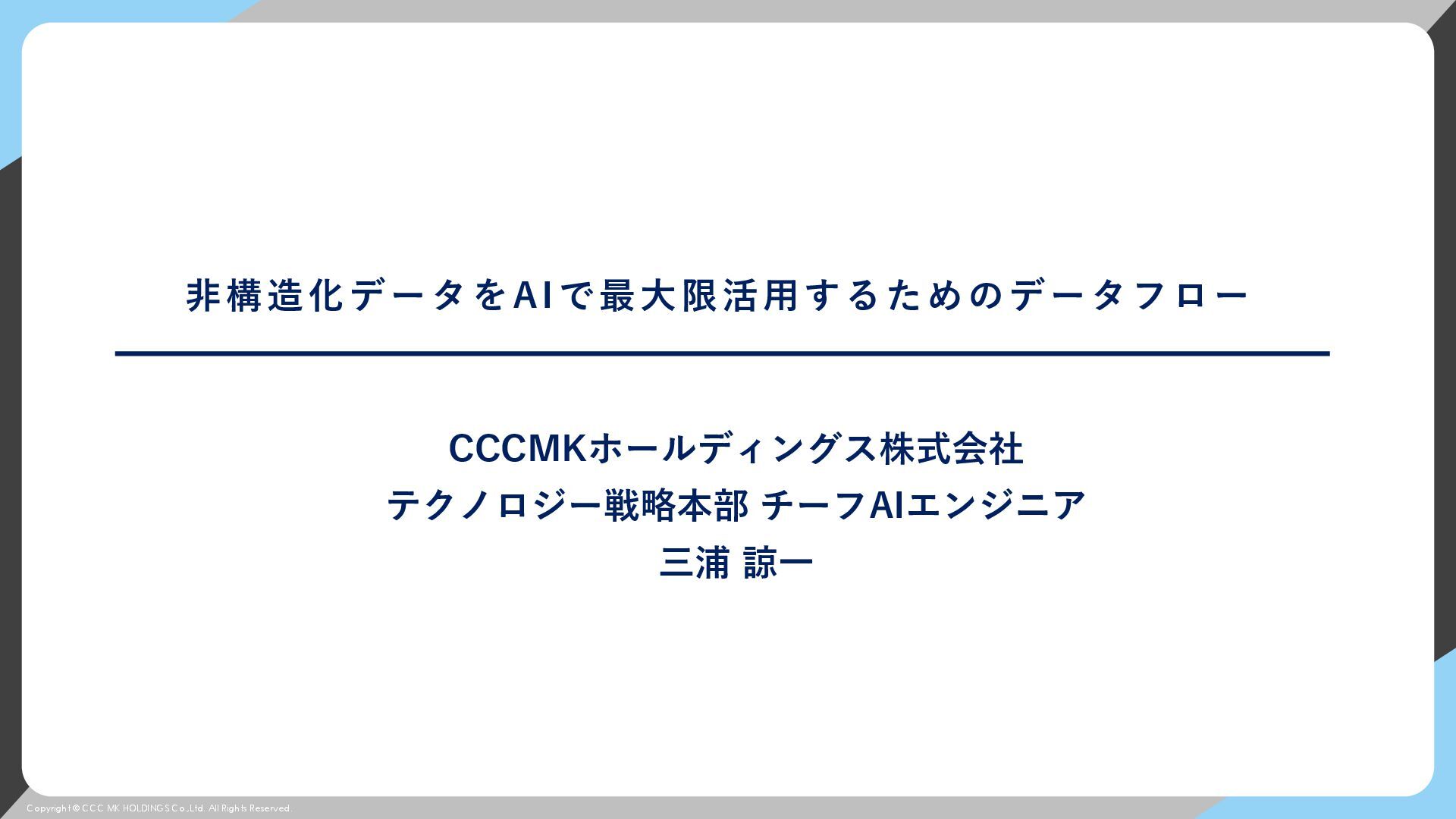 © CCC MK HOLDINGS Co.,Ltd. All Rights Reserved. 非構造化データをAIで最大限活用するためのデータフロー CCCMKホールディングス株式会社 テクノロジー戦略本部 チーフAIエンジニア 三浦 諒一