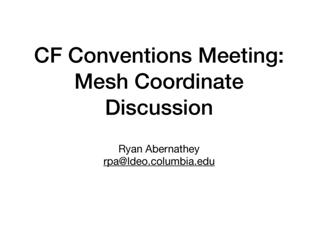 representation of native mesh coordinates in CF. • While we’re at it, can we also deal with concepts such as “cell center variable,” “cell face variable,” etc.? • None of this needs replace the existing “cell boundaries” convention.