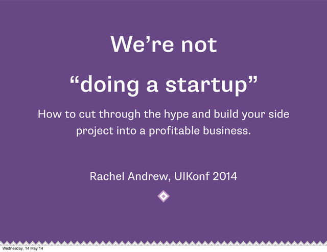 a landing page and email signup form • About 500 people signed up • We emailed the list on launch and those people represented enough sales on launch day to pay back all pre-launch costs. Wednesday, 14 May 14