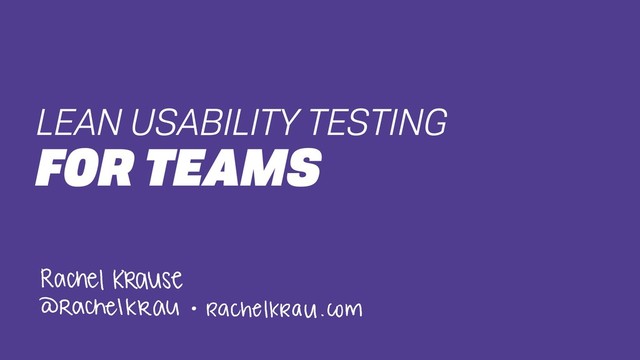 Lean usability testing introduces lean UX principles — testing early and often, reducing waste and collaboration, to name a few — to the traditional usability testing process. We’ll explore the value behind going lean and explain what a sample lean usability test looks like. We'll lay out a plan for how to facilitate your own usability tests and discover why it’s important to include your team and stakeholders in the process. If you're not doing usability testing now, this talk will help get you started without the need for a big budget or fancy usability lab.