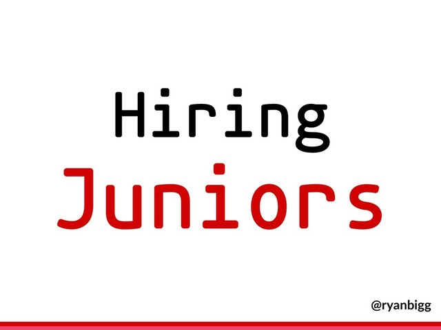 This is a story about hiring juniors, why we should do it, and what things I've learned from hiring a bunch and mentoring them.