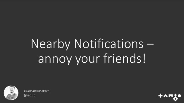Nearby API is easy and energy efficient • Nearby Notifications are the most easy way to start using Beacons on Android