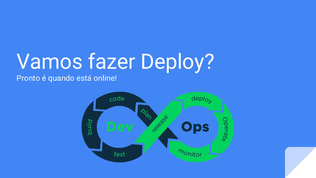 É o momento em que você para de ficar brincando de desenvolver software na sua máquina e entrega valor ao seu cliente/usuário colocando o sistema online para todo mundo usar e ver realmente se ele ajuda ou atrapalha! O que é Deploy? Eu deploio, tu deploias, eles e elas deploiam!