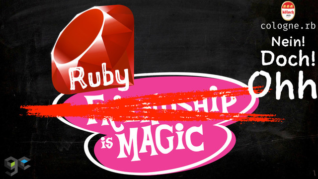After a very long break we finally did another Ruby is Magic at Cologne.rb. This time we went with arguably the most absurd feature in Ruby: The flip-flop operator. As usual the slides are in German and don't work well without the live performance ;-)