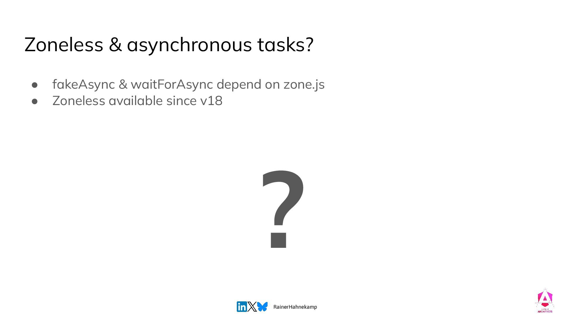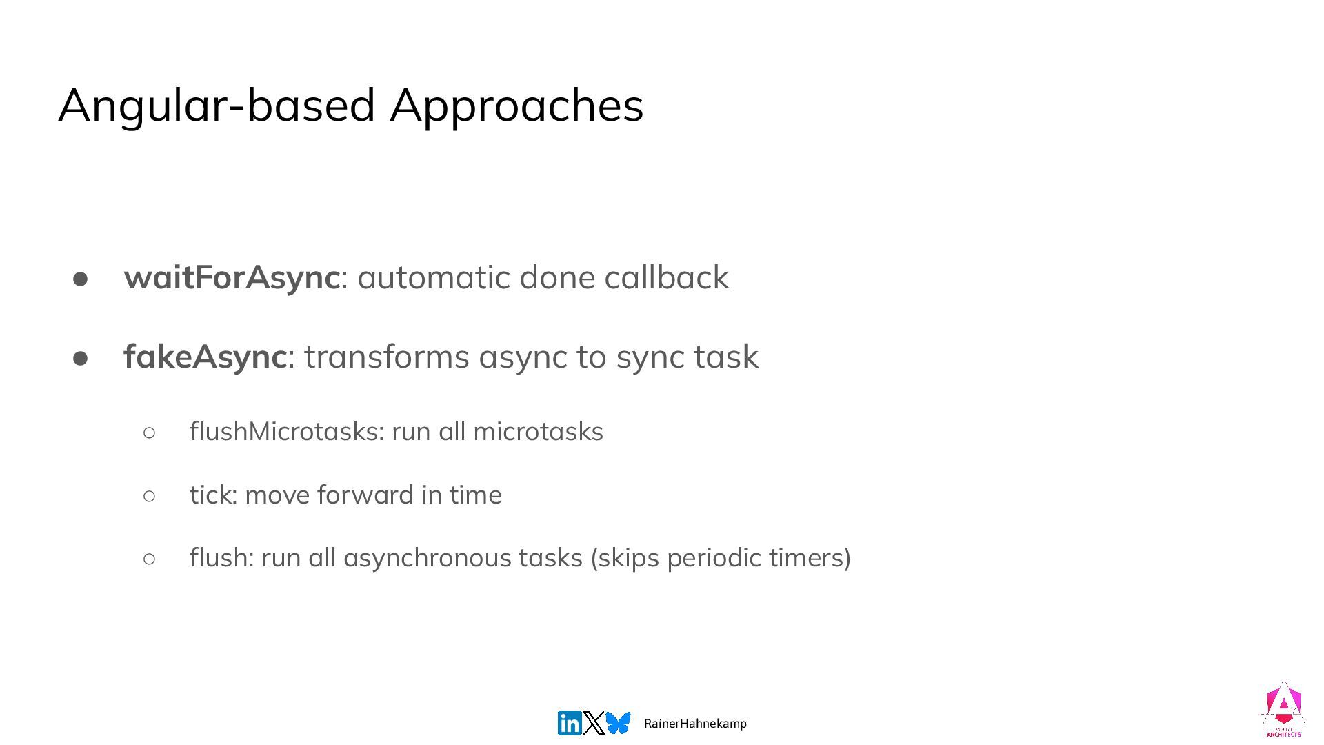 This 45-minute workshop dives into unit testing in Angular with a focus on controlling asynchronous code and mocking dependencies effectively. You'll learn how to write stable, focused tests using both zone-based and zone-less approaches, with examples in both Jasmine and Jest. We'll cover how to mock services without making your tests brittle, and discuss when unit tests are the right tool—and when they’re not. The session wraps up with a Q&A to address your specific questions.