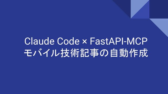 ◆発表タイトル Claude Code × FastAPI-MCP モバイル技術記事の自動作成