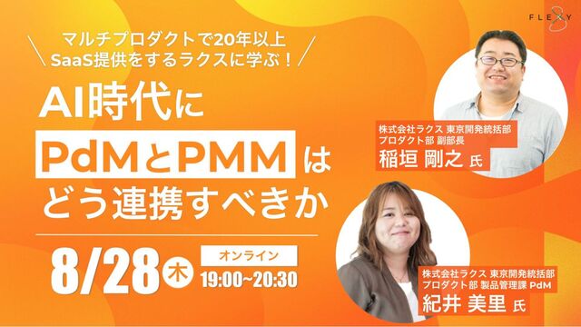 ◆イベント名 マルチプロダクトで20年以上SaaS提供をするラクスに学ぶ、AI時代にPdMとPMMはどう連携すべき https://flexy.connpass.com/event/364939/